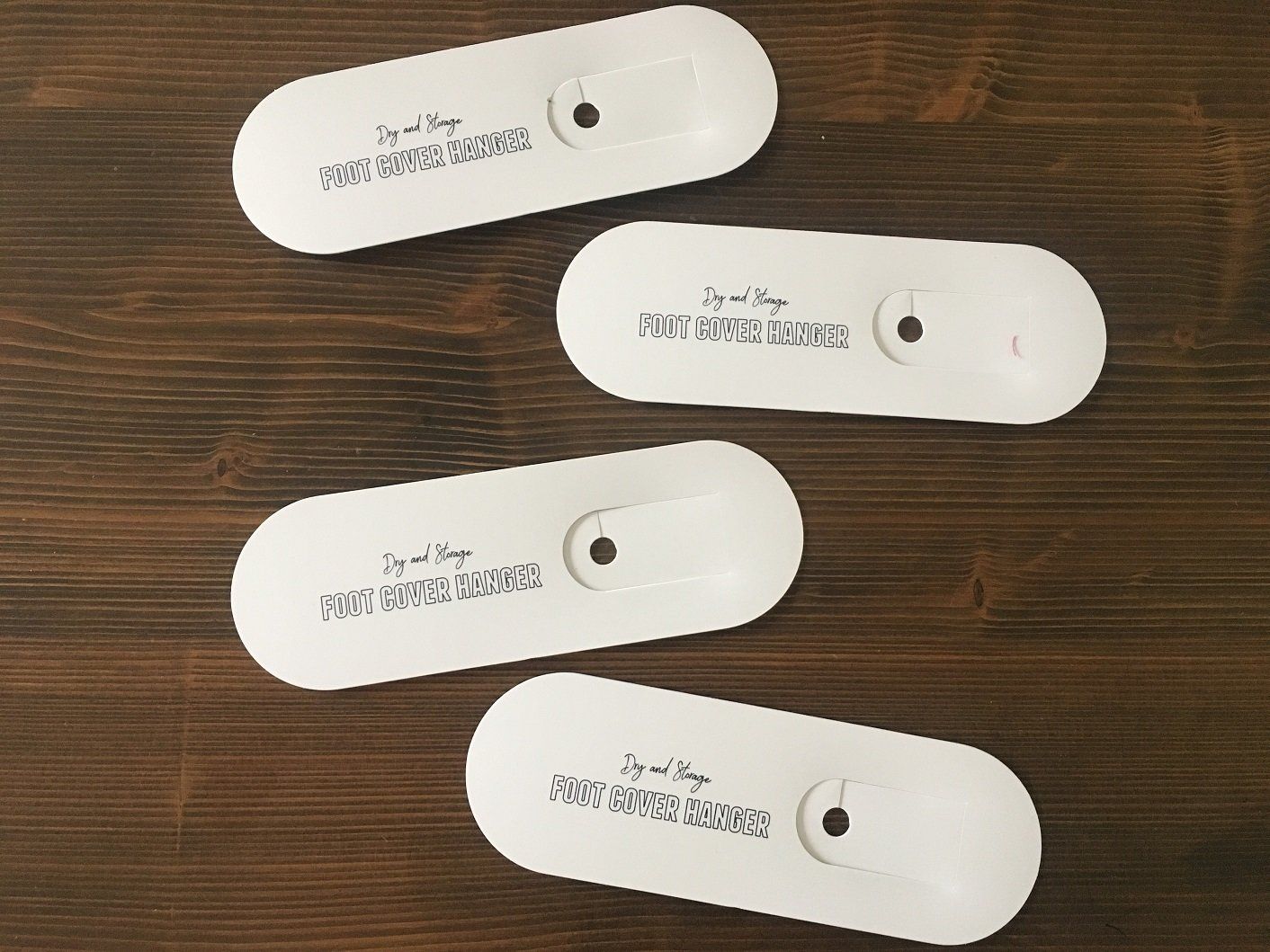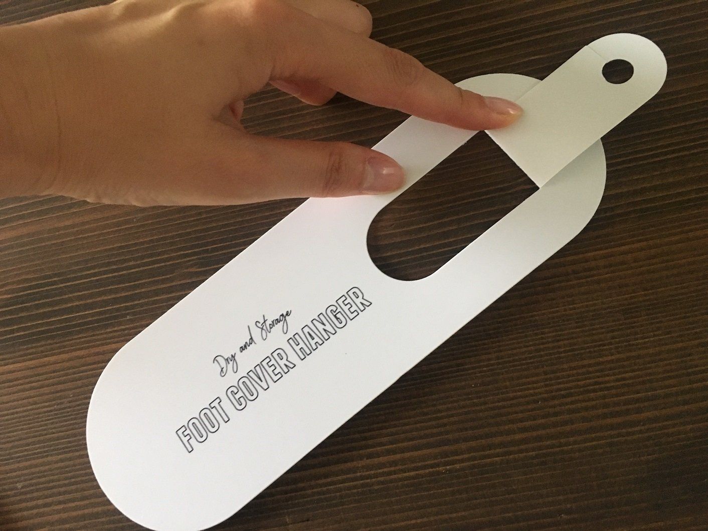 キャンドゥで販売されている「フットカバーハンガー」(100円)は、1袋4枚入り。靴下左右2セット使えますよ。薄めのプラスティック素材で中央が開きます。この部分をハンガーやポールに引っかけるわけです。