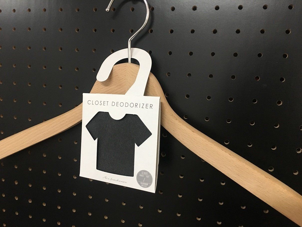 セリアの消臭シートは一見するとほとんど同じに見えますが、じつは商品ごとに使う場所が異なり、フックつきや貼るタイプなど設置方法が変わるんです。今回は複数あるなかからクローゼット、ゴミ箱、冷蔵庫用を購入。価格は1個100円です。