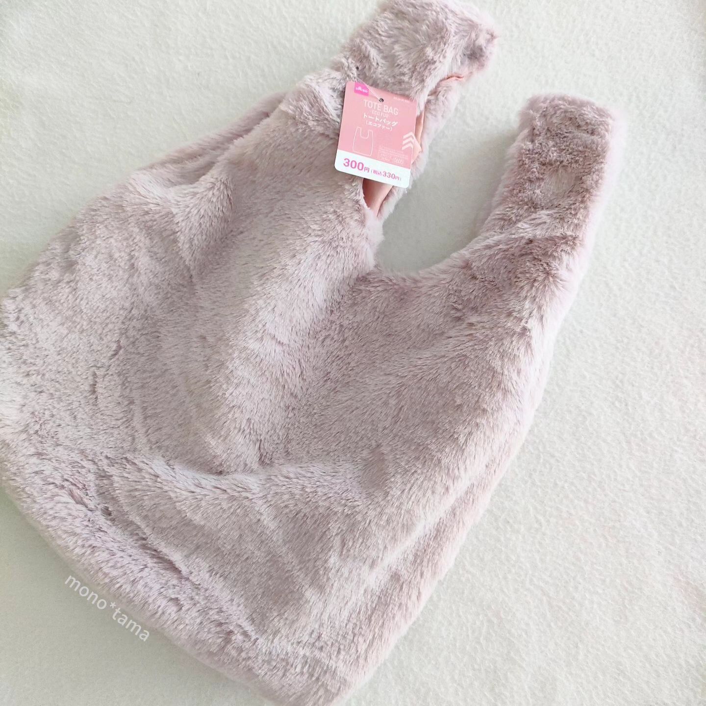 秋冬のお出かけ気分を高めてくれそうな「エコファートートバッグ」も、ダイソーで買えちゃうの!?と話題。こちらも330円のプチプライスながら、@mono_tama3さんによると「ふわふわモコモコで触り心地がたまらなく気持ちいいバッグです」とのことですよ。このほかにカラー展開もあるようなので、色違いで楽しむのもよいですね。