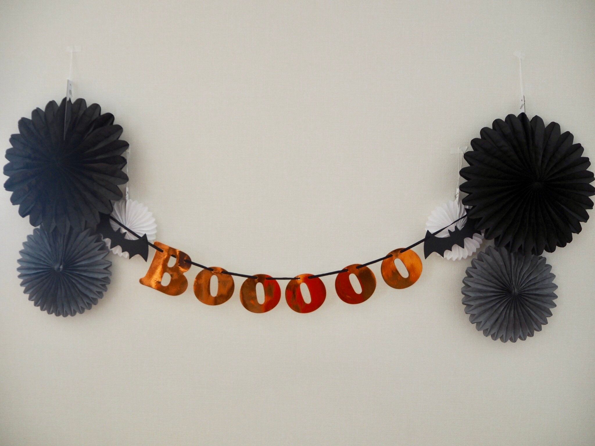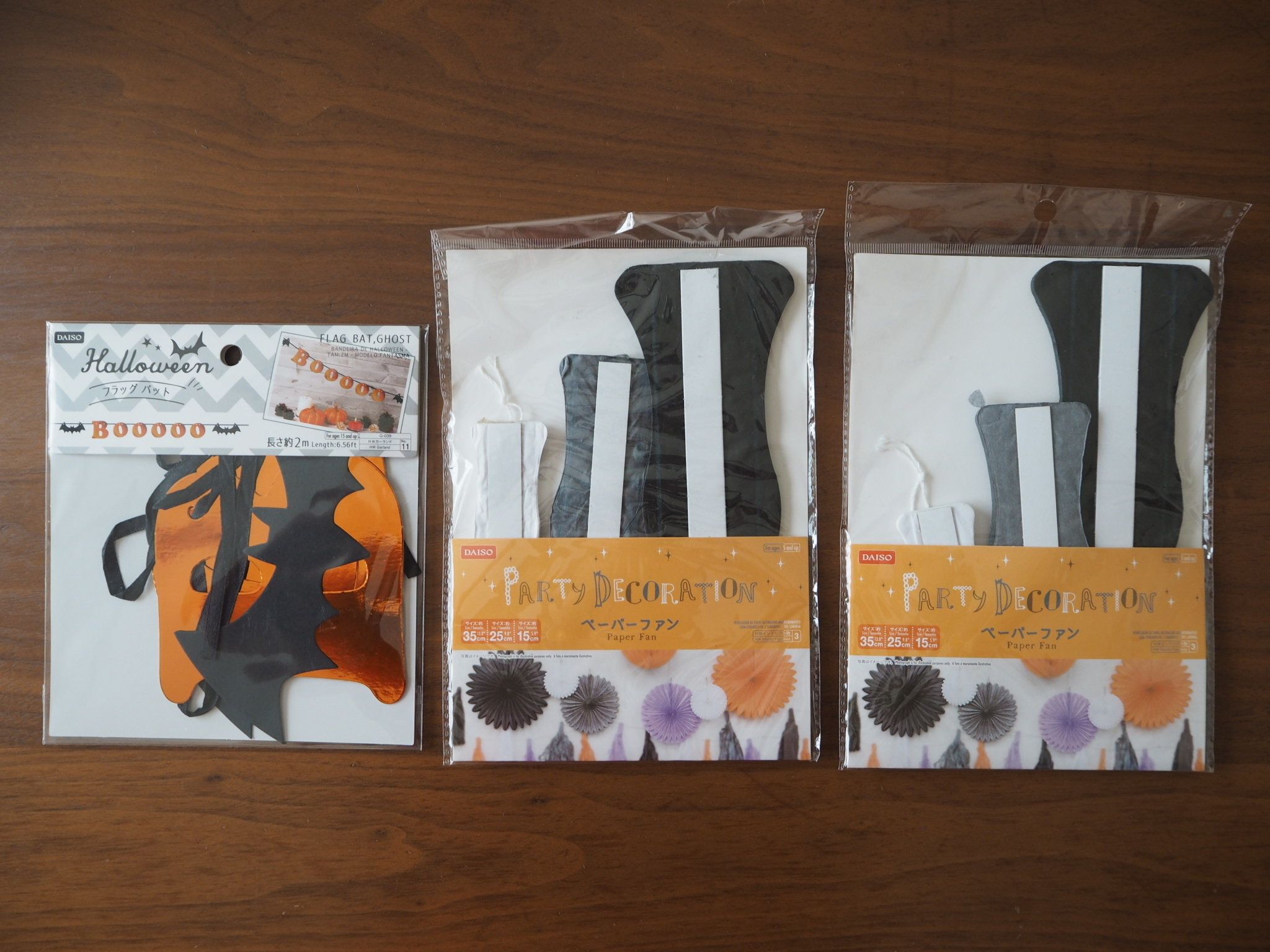 フォトブースに使えるものが豊富なダイソー!ガーランドとペーパーファンを2袋準備します。