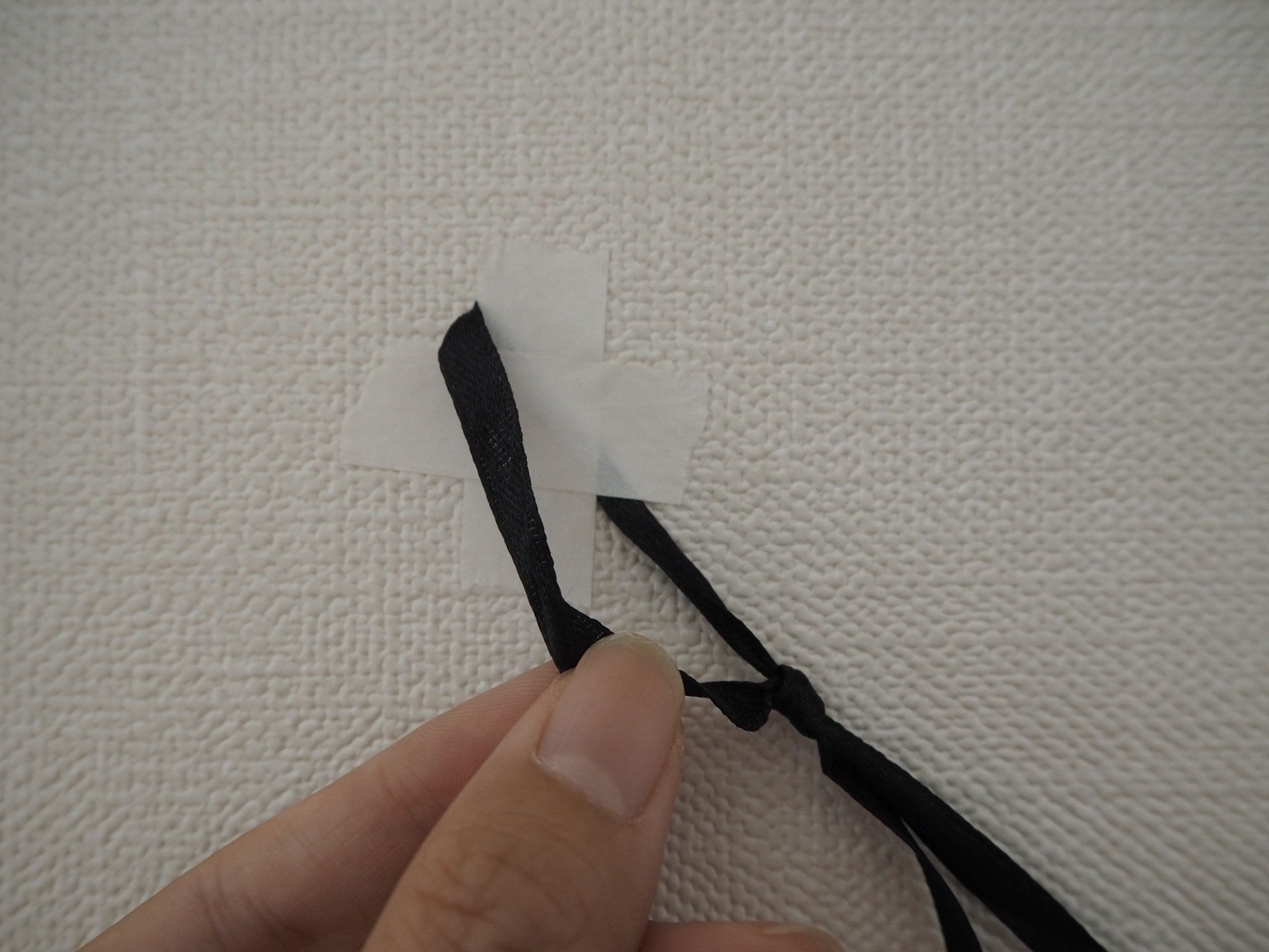 このまま貼っても良いですがリボンが真っ直ぐのままだと抜け落ちやすい…。