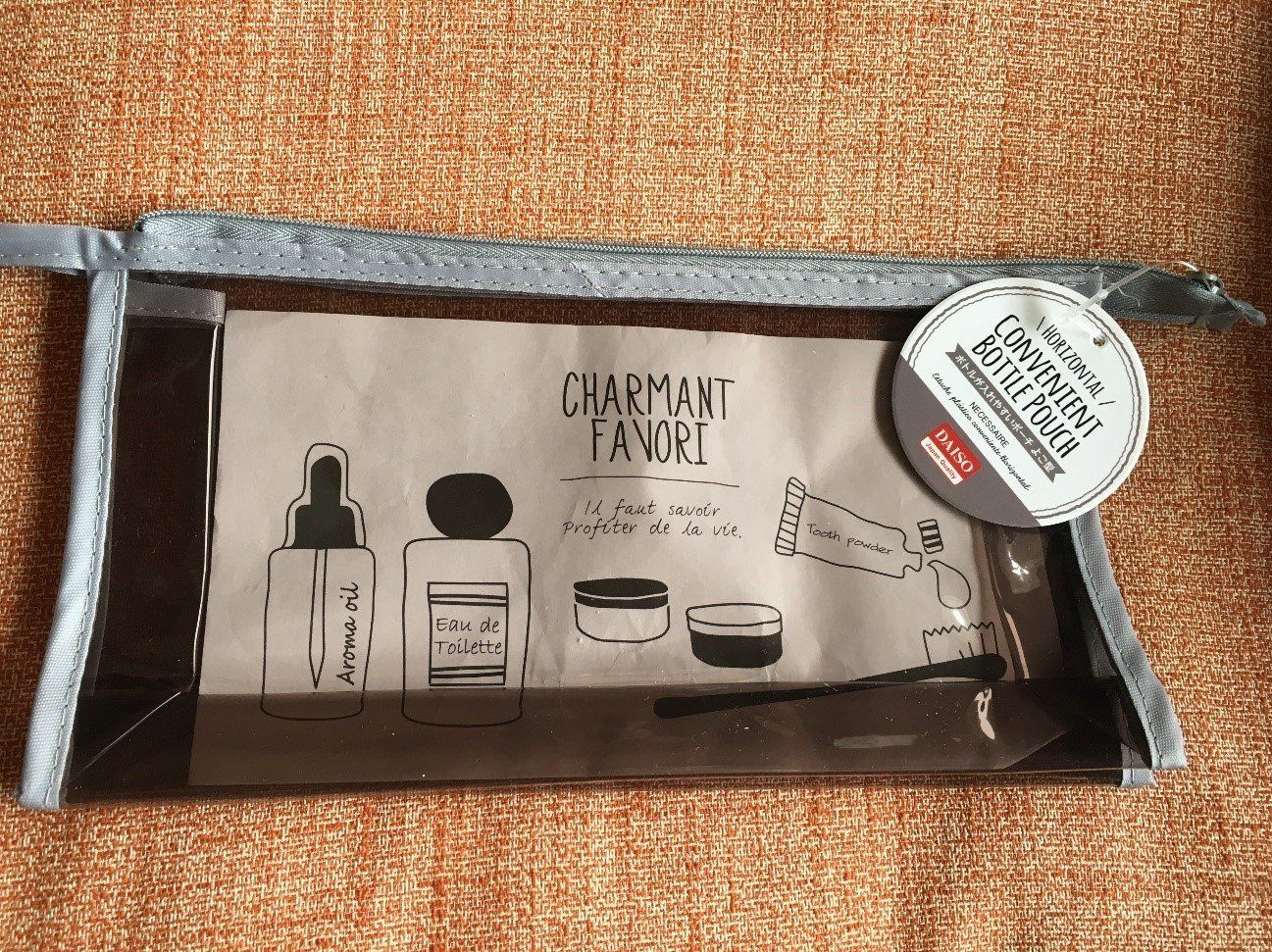 100円ショップには、中が見える小物バッグがたくさんあります。わたしが普段使っているのは、ダイソーのビニール製小物バッグ。マチがあるので、スプレーなどの大きな物を入れてもジッパーがきちんと締まって安心です。