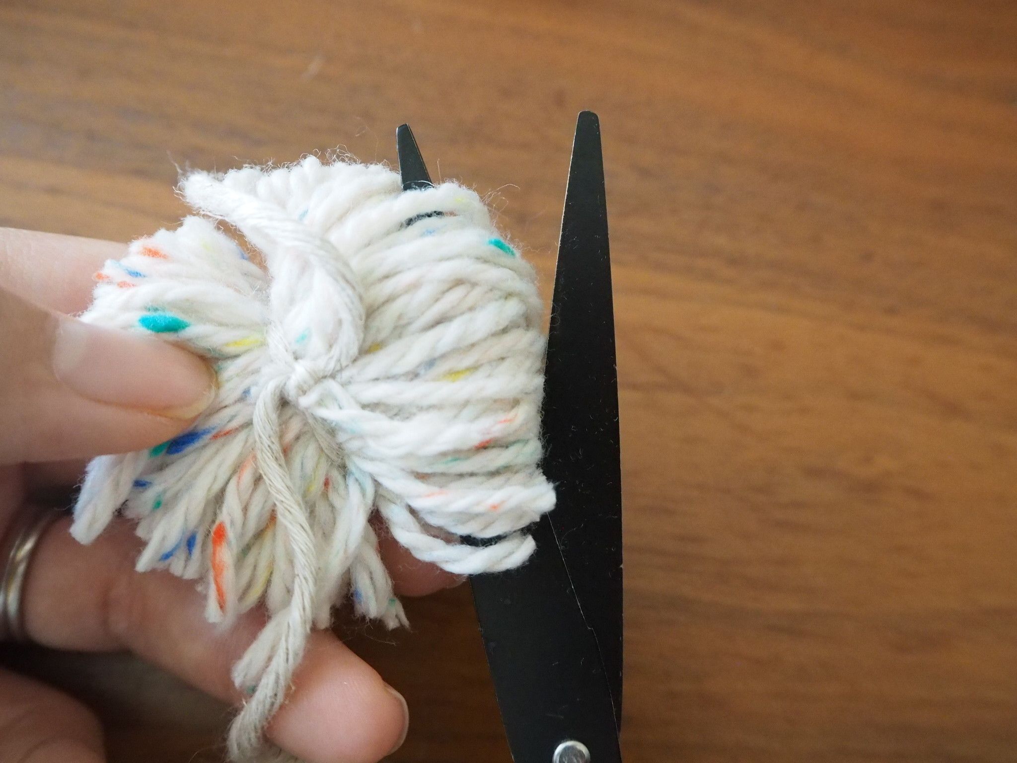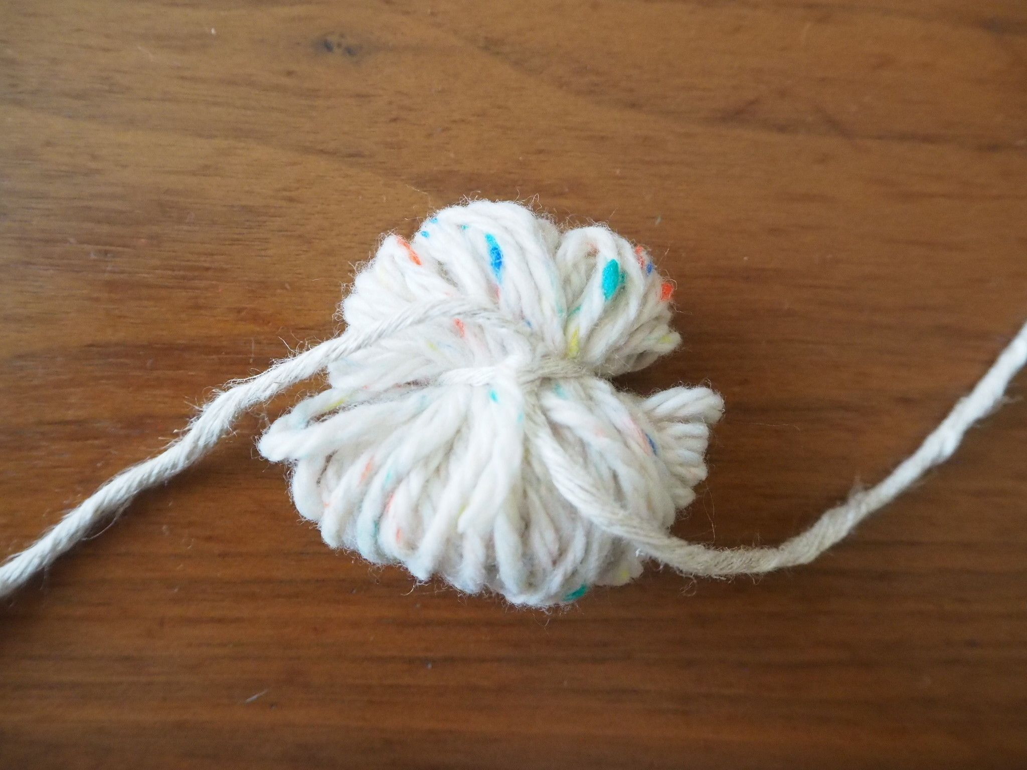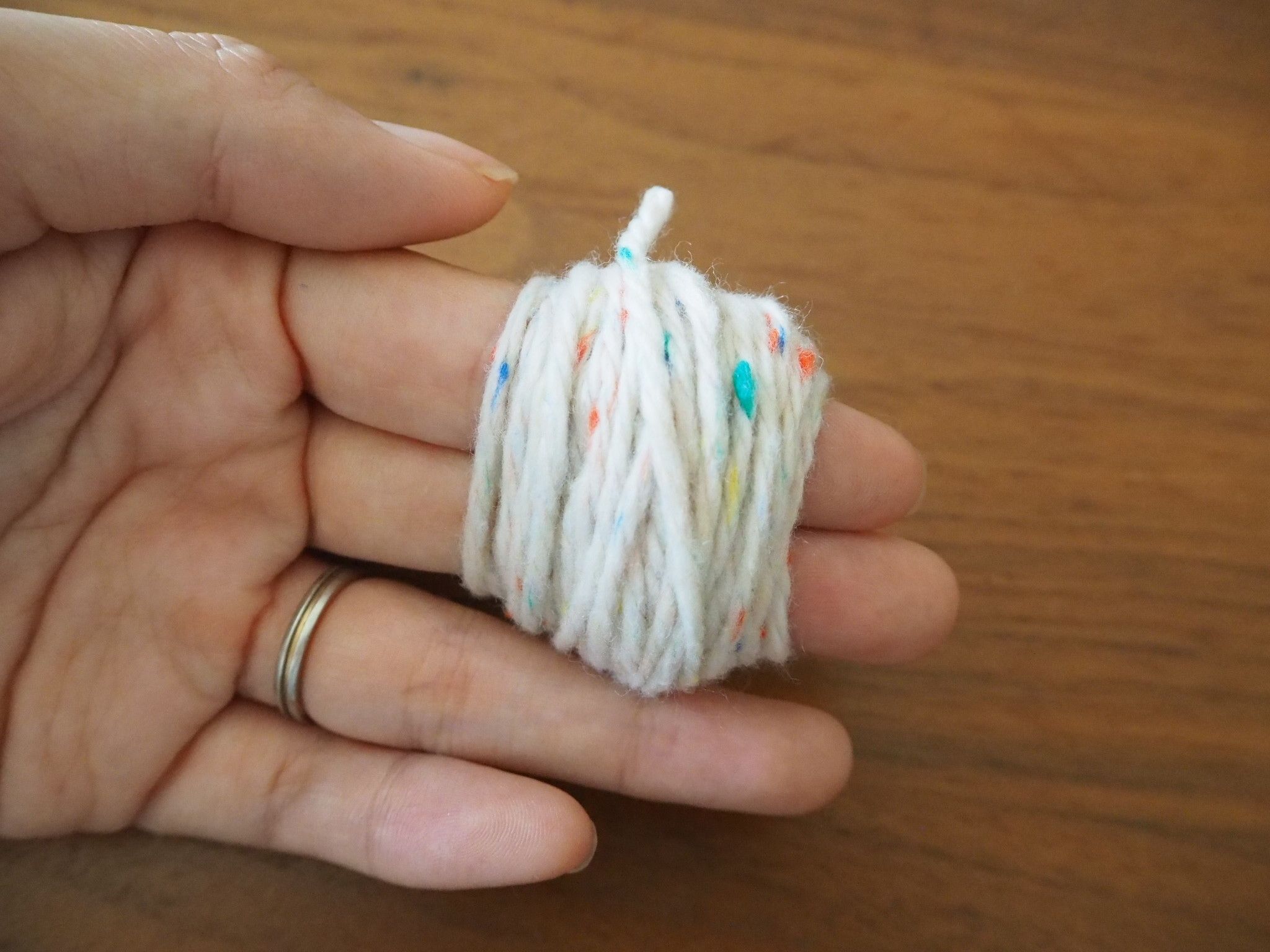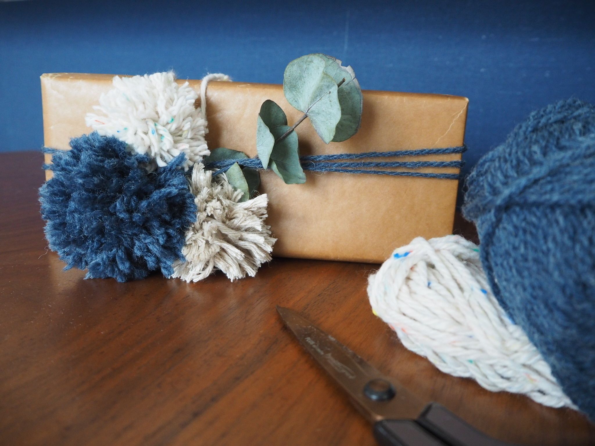 毛糸でポンポンを作ってワンポイントにしても可愛いラッピングに仕上がります。