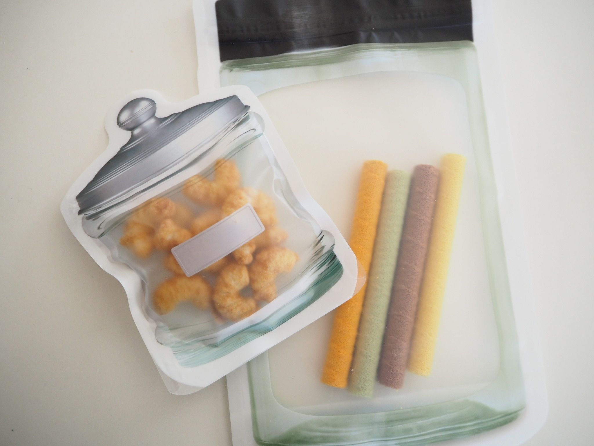 内側が加工されていてダイレクトに食品を入れてもOKなものも多いジッパーバッグ。小包装でないお菓子が余った時に保管しておくのにも便利♪完全密封ではないので長期保存は避けましょう。入れる前に直接食品を入れてもOKなものかパッケージを確認してみてくださいね!