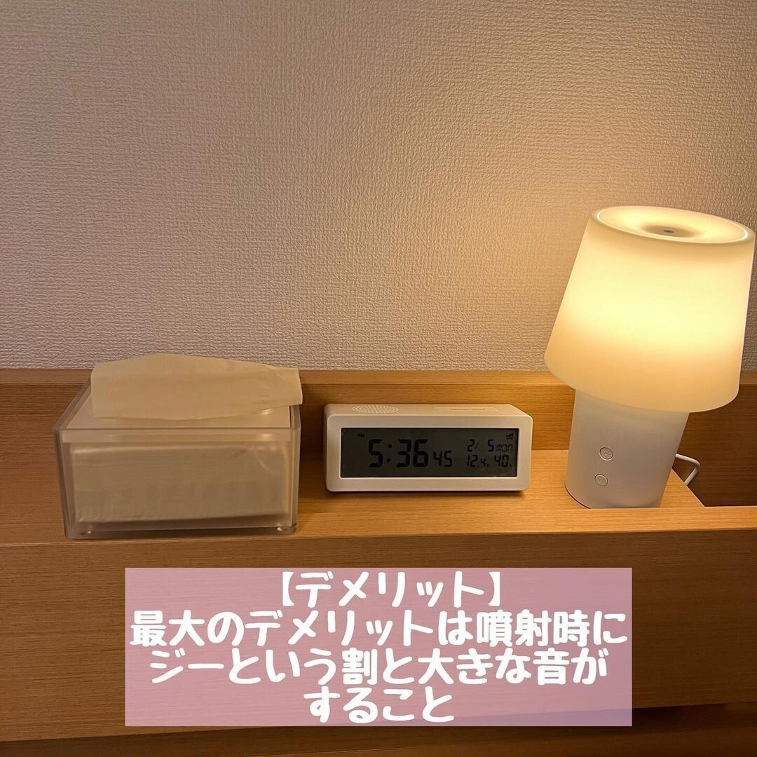 デメリットとしては、アロマの噴射時にジーっという音が鳴ること。その音が気になるかたも少なくないようです。ただ、投稿者の方も音のデメリット以外はとても気にいっているそうなので、買って損はなさそう!アロマが好きなかたや夜の時間に癒しを求めているかたは、ぜひチェックしてみてください。