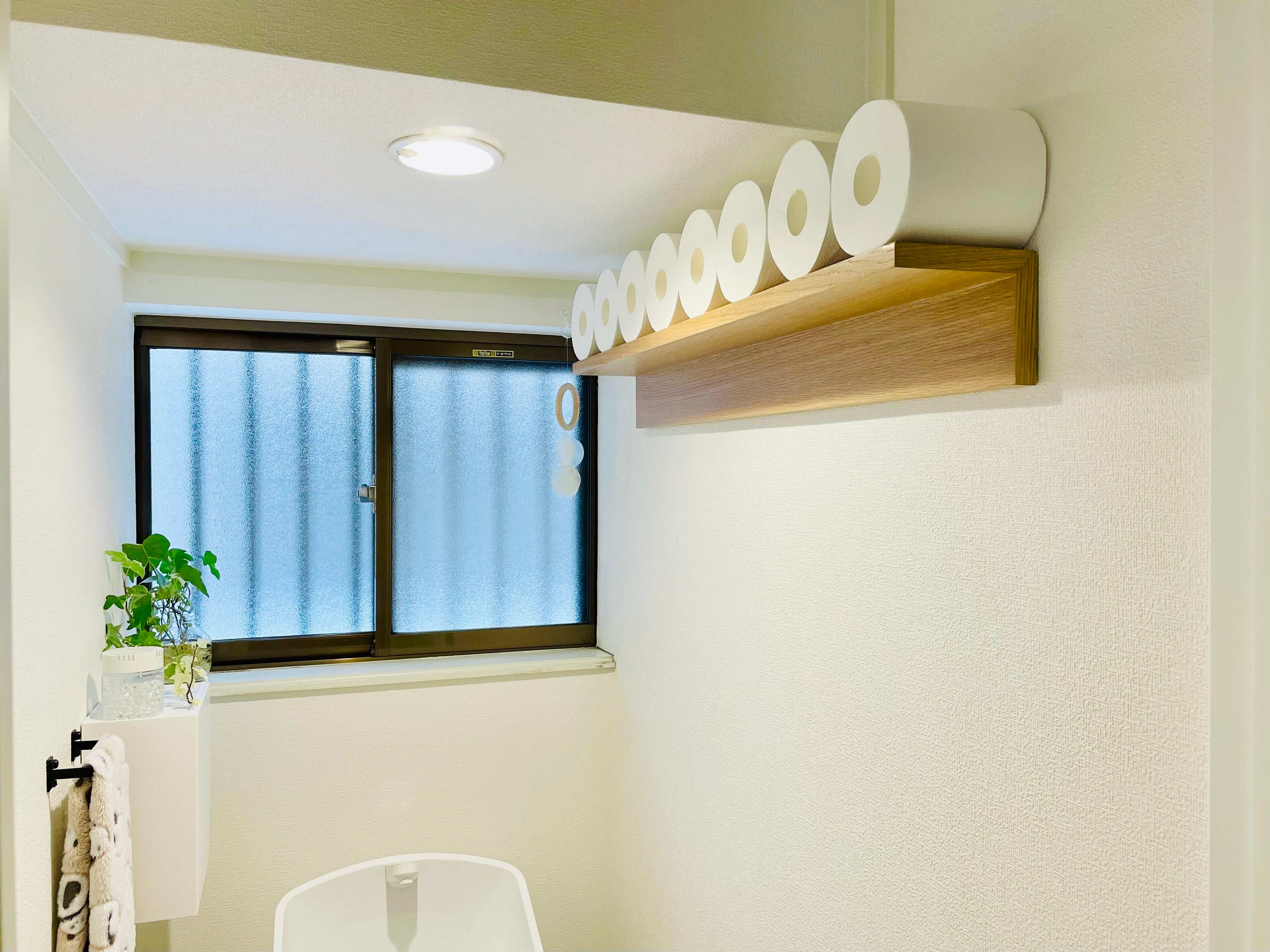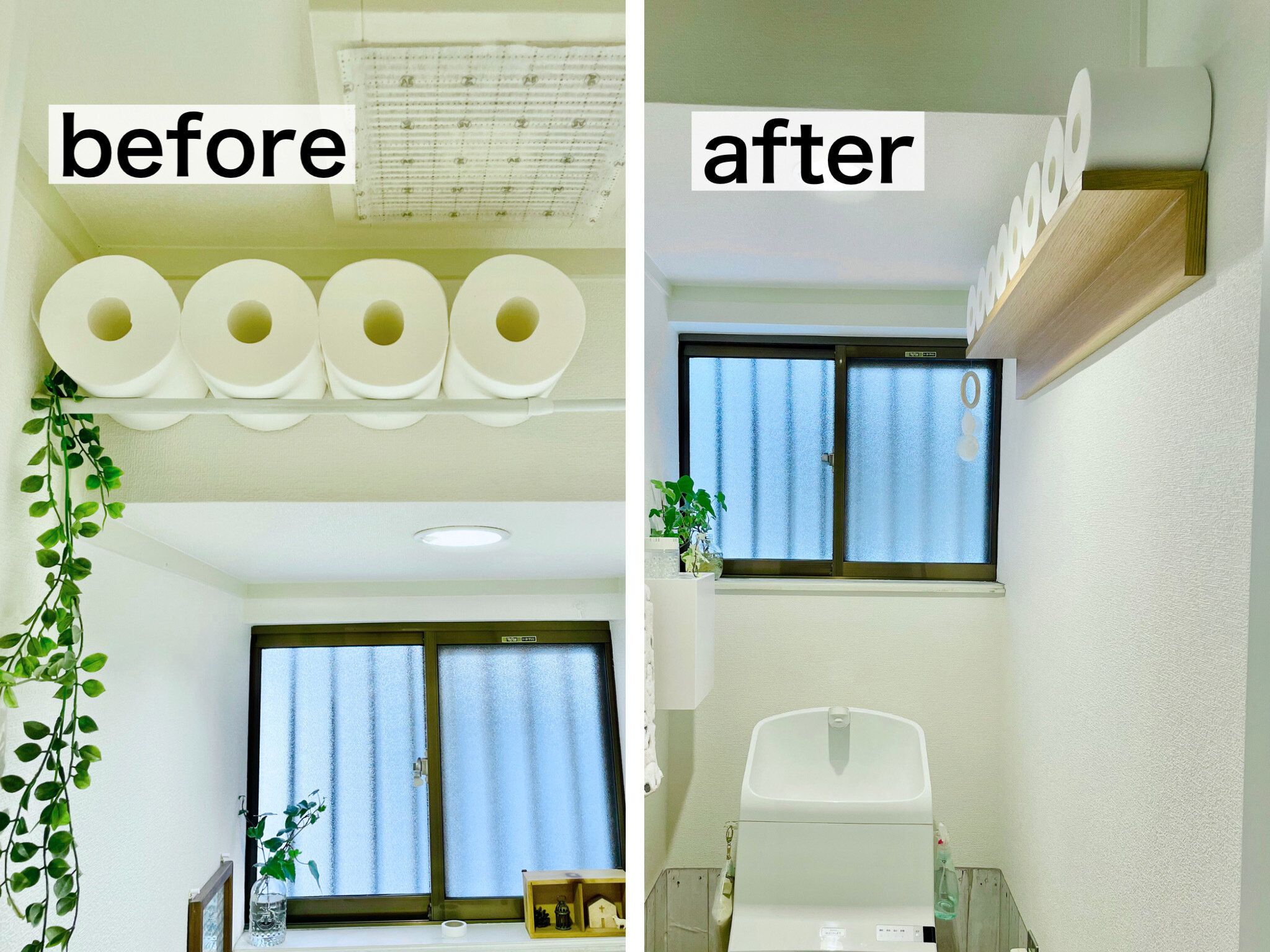 これまでトイレットペーパーは、つっぱり棒を使って天井近くに収納していました。そのため、よく「お母さーん!」とトイレに呼び出されていたのです。家事の手を止めて毎回トイレに行くのは、地味にストレス!自分で取れるよう、手の届く位置に設置しました。