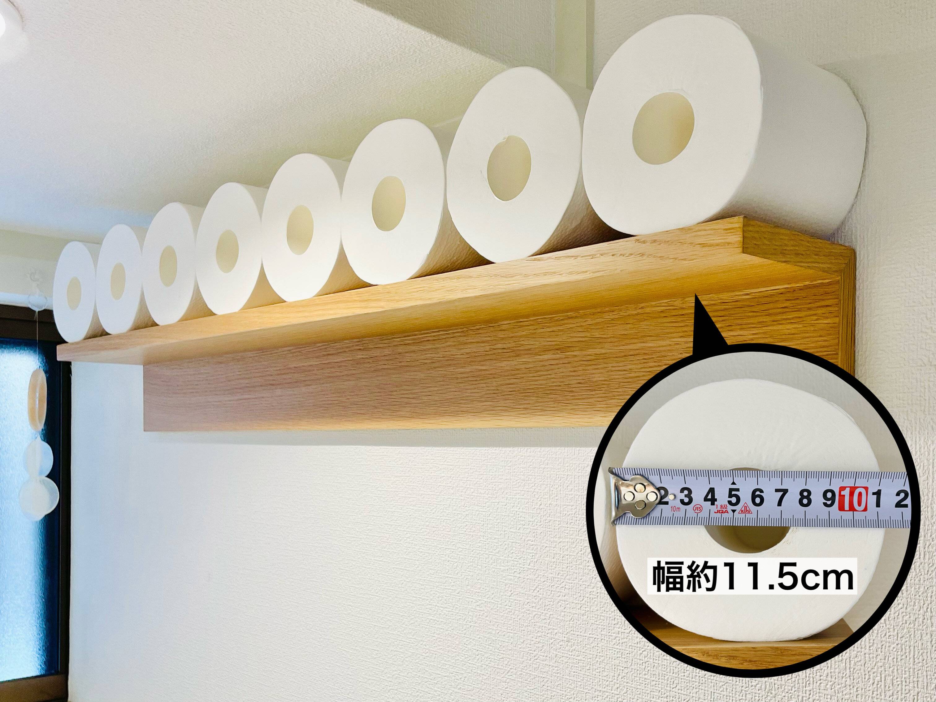 わが家で使用しているのは、1.5倍巻きのトイレットペーパー。ロールの直径は約11.5cmです。