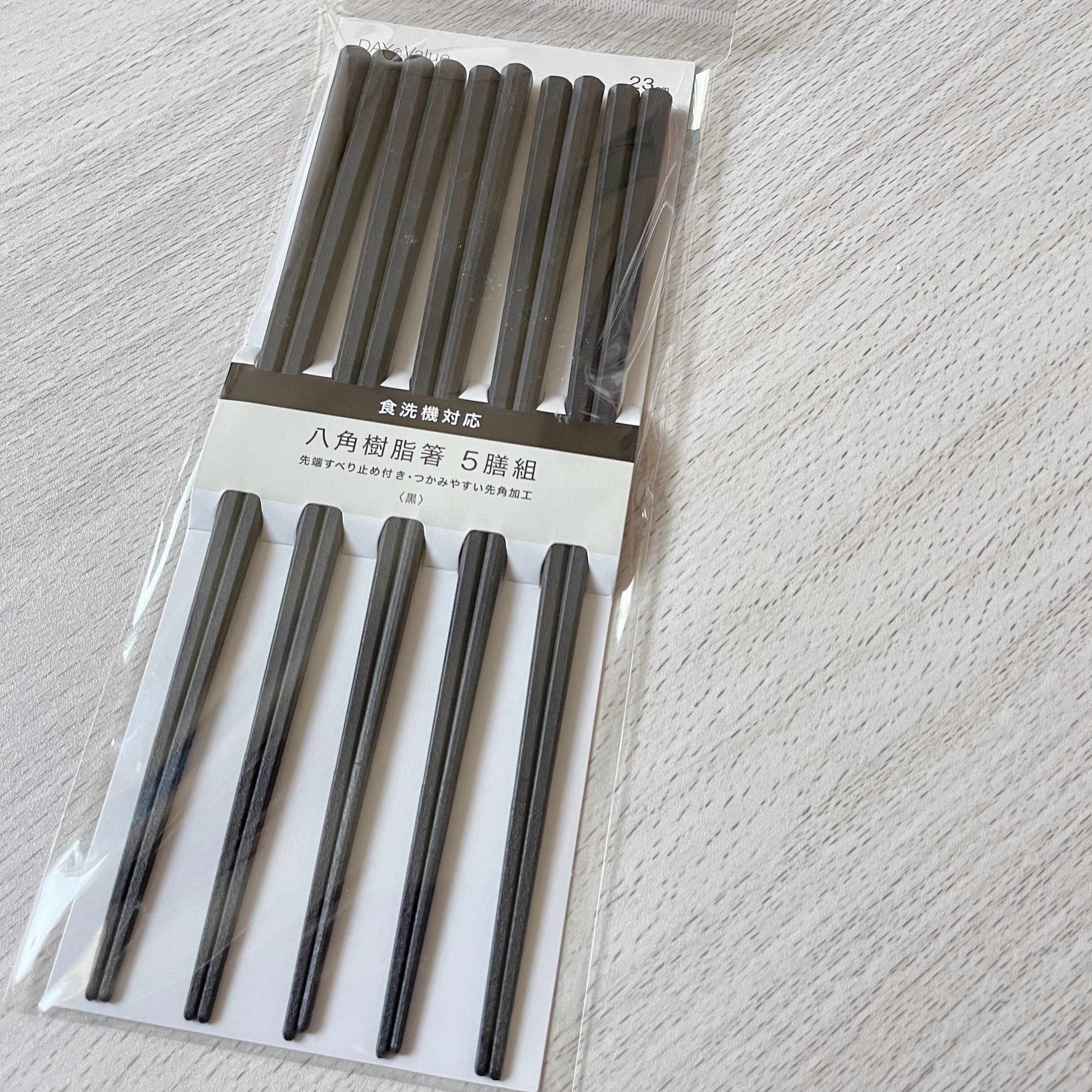 ニトリで購入した「食洗器対応樹脂はし 使いやすい八角5膳組 BK」は5膳セットで399円です。1膳約80円なので、100均で1膳買うよりもお得です。しかも、ただお得なだけではありません。