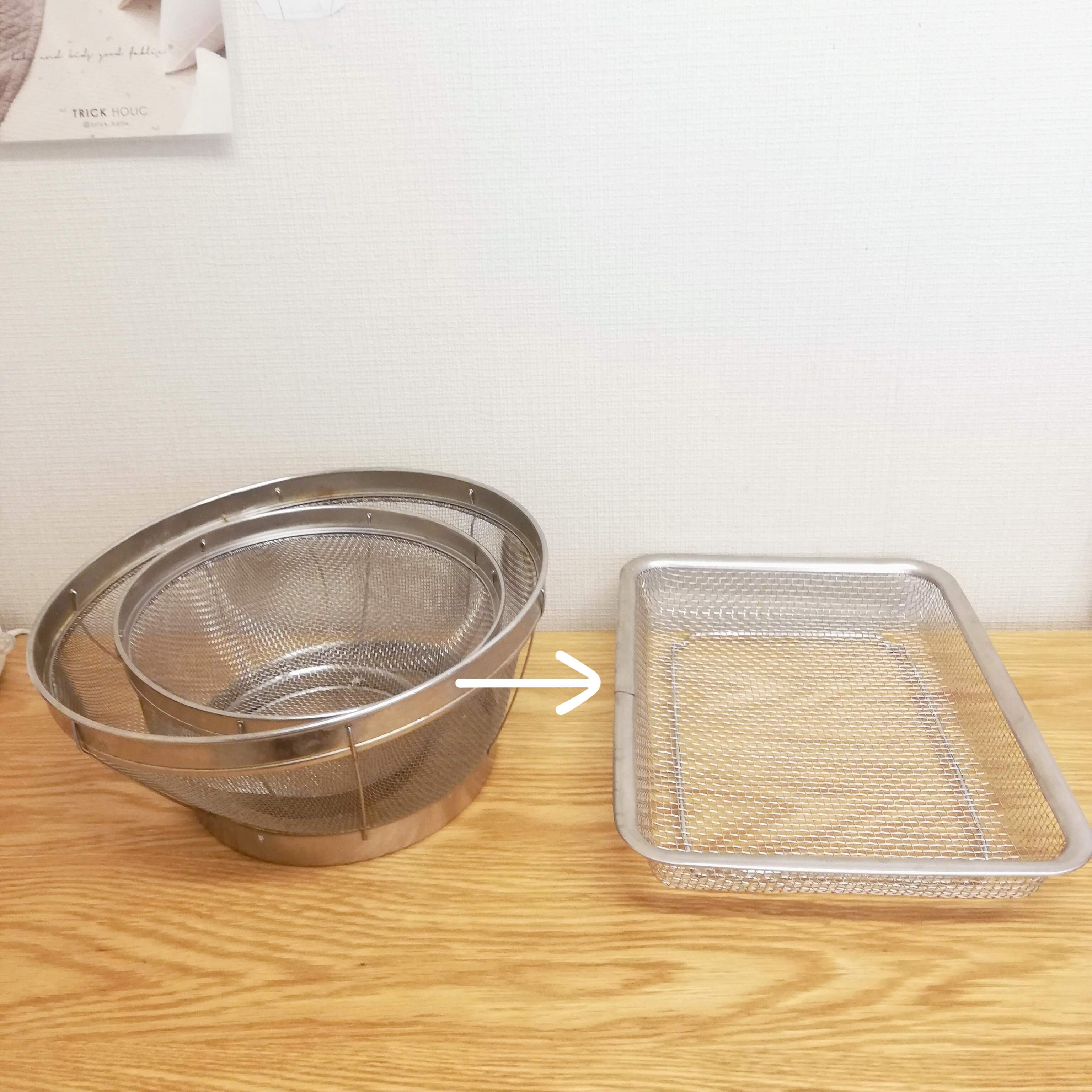 メッシュトレーの大サイズがあれば、かさばる深ザルが不要になります。