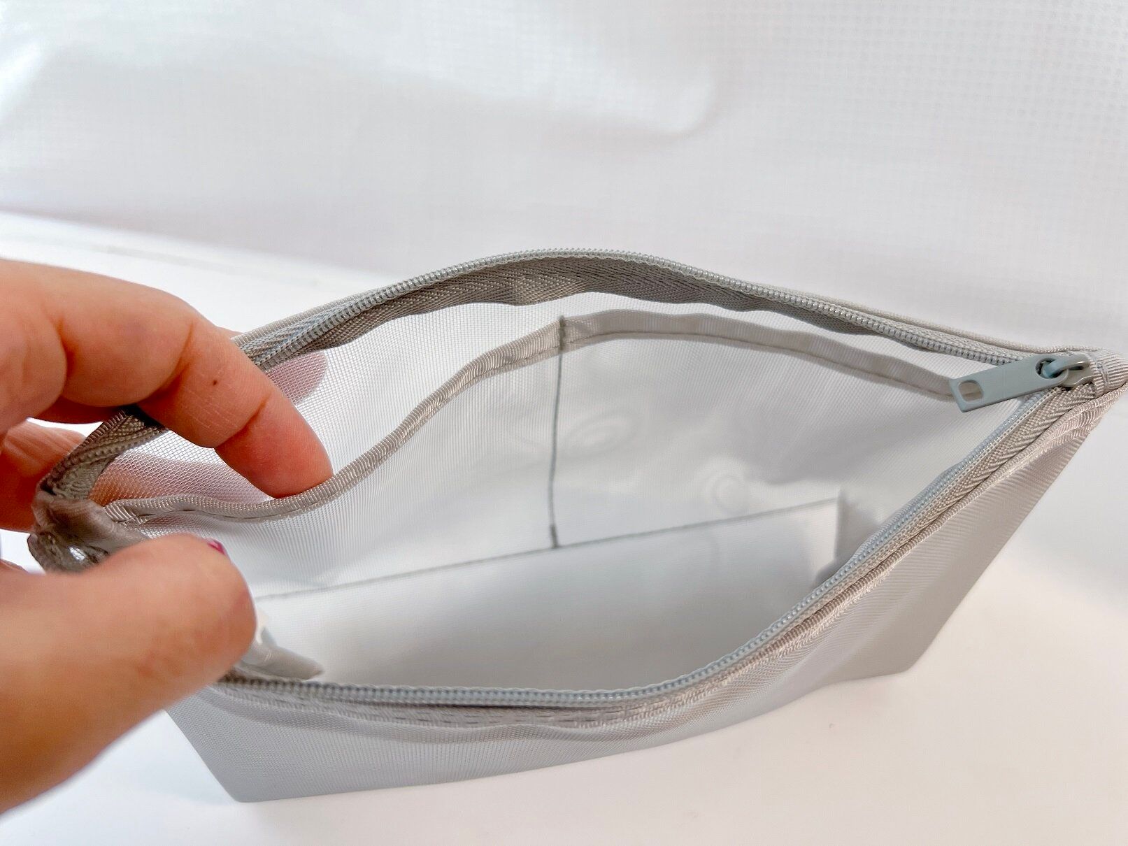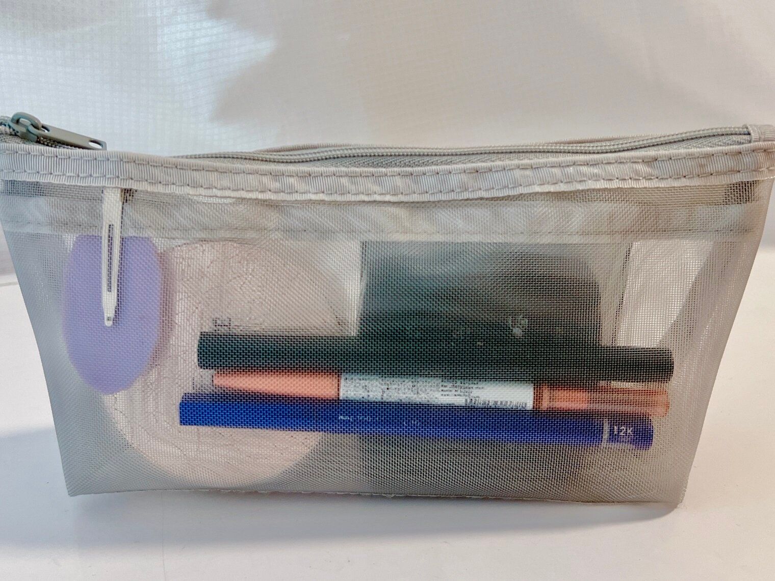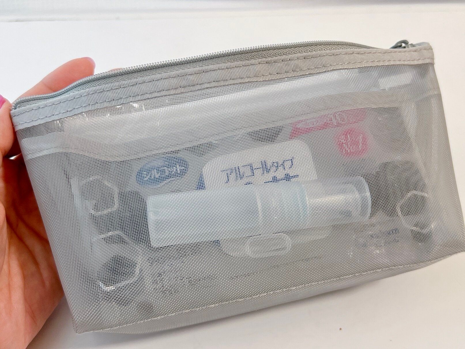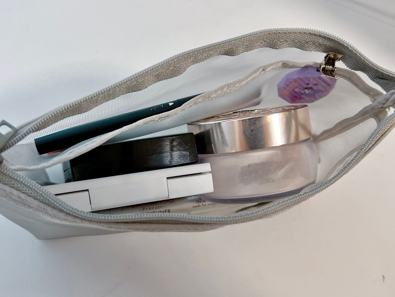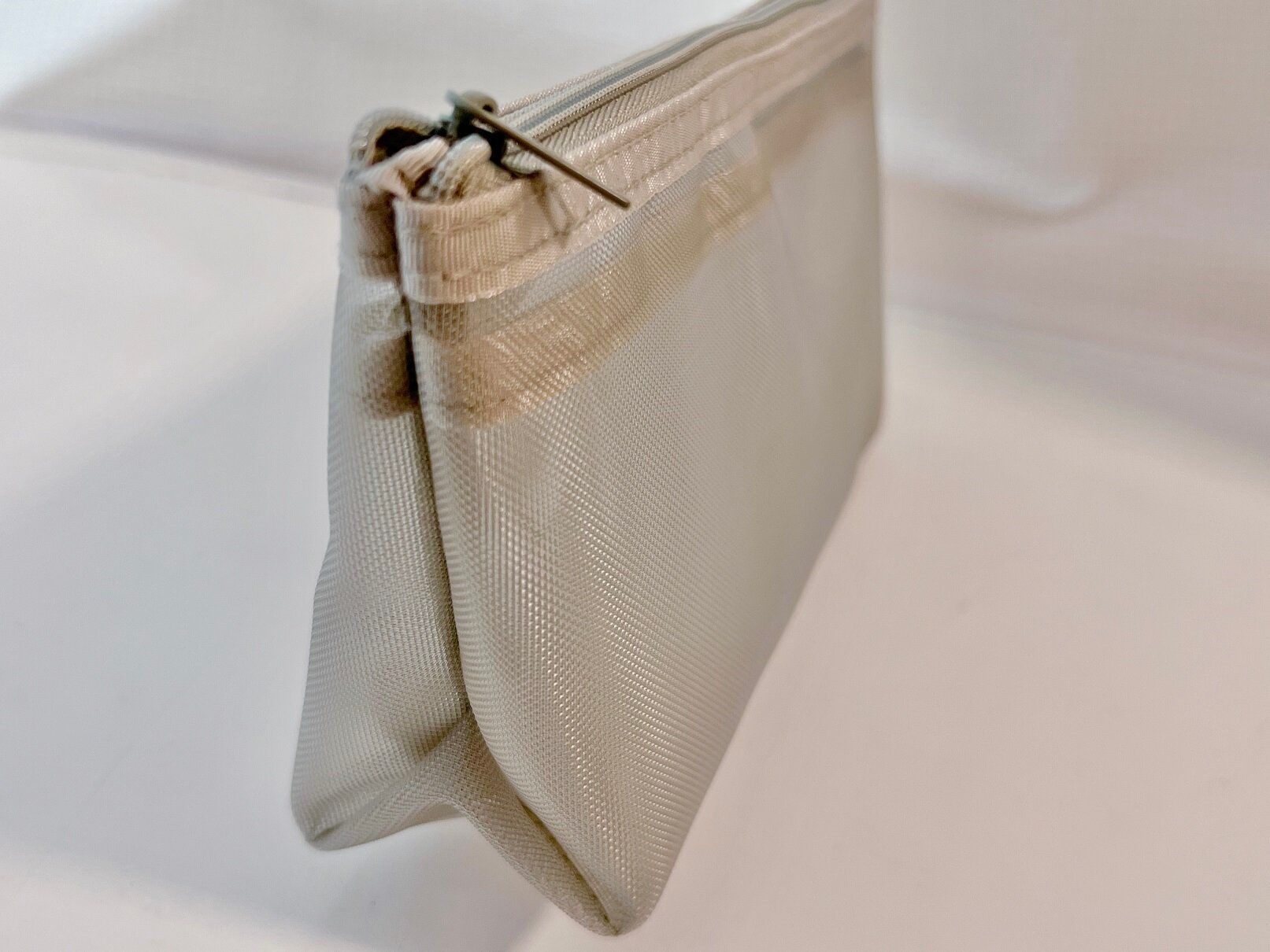 ハリのあるメッシュ素材ですが、チャックの口は大きく開くのでメイク道具も取り出しやすいです。