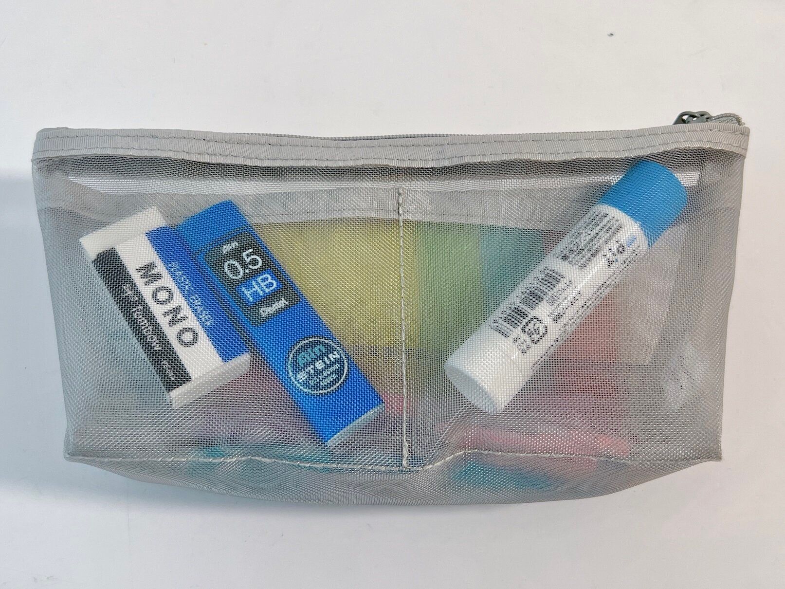 ペンケースとして使う場合、デザインがシンプルなので年齢・性別を問わずに使えるのが魅力です。また、メッシュ素材のおかげで中身が見えるから、使いたい物を取り出しやすいですよ。