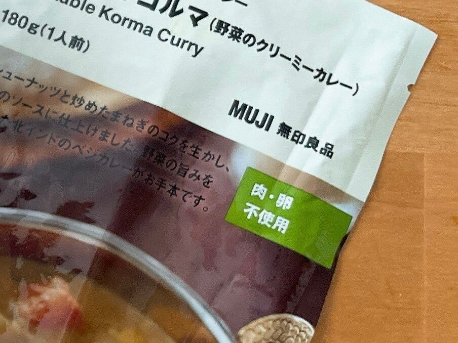 日本では少ないかもしれませんが、「ベジタリアン」「ヴィーガン」の人達に分かりやすいように「肉、卵不使用」という黄緑色のラベルがパッケージに示されています。