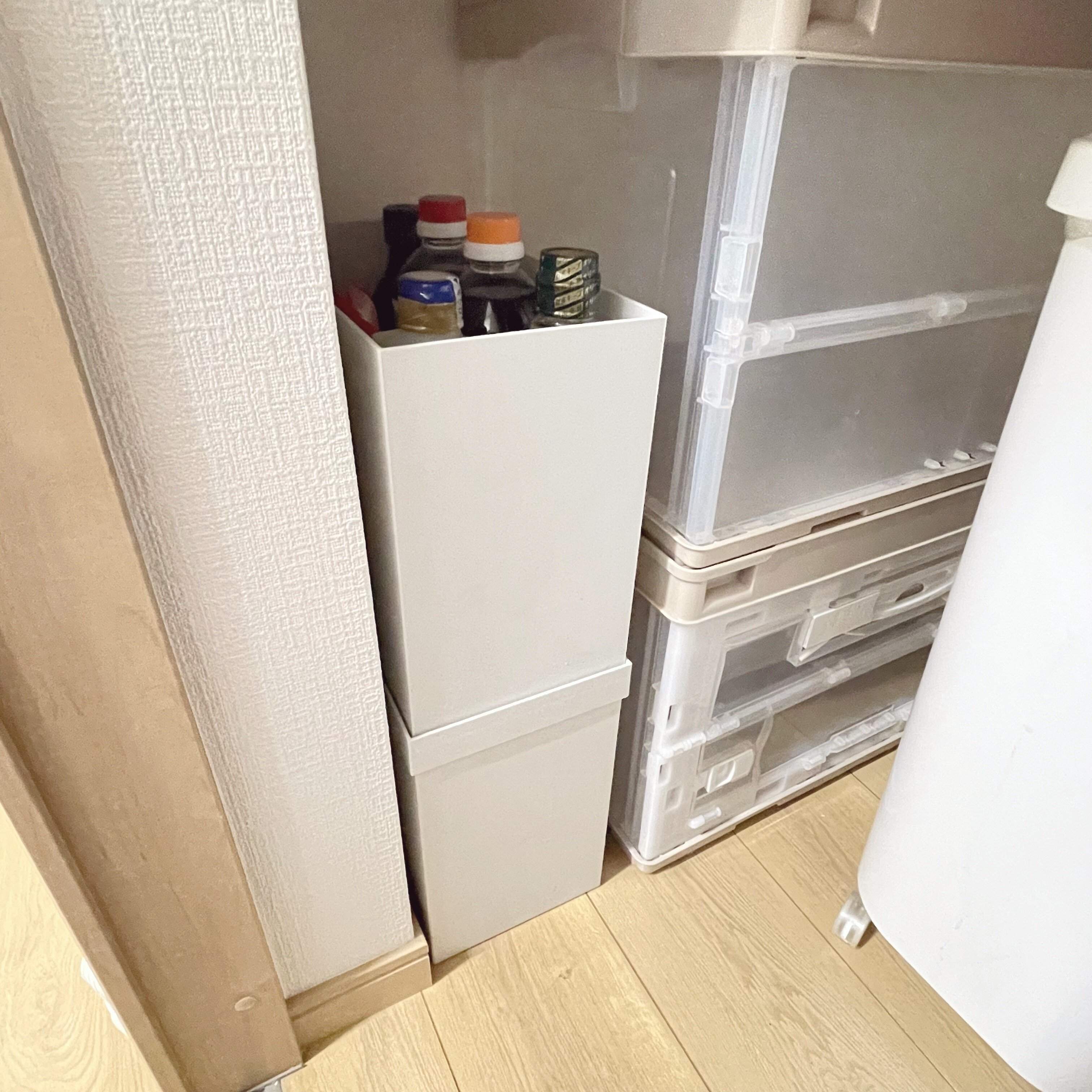 地味に困る、カセットコンロや調味料のストック収納にも、縦空間を上手く利用して収納するとができます。