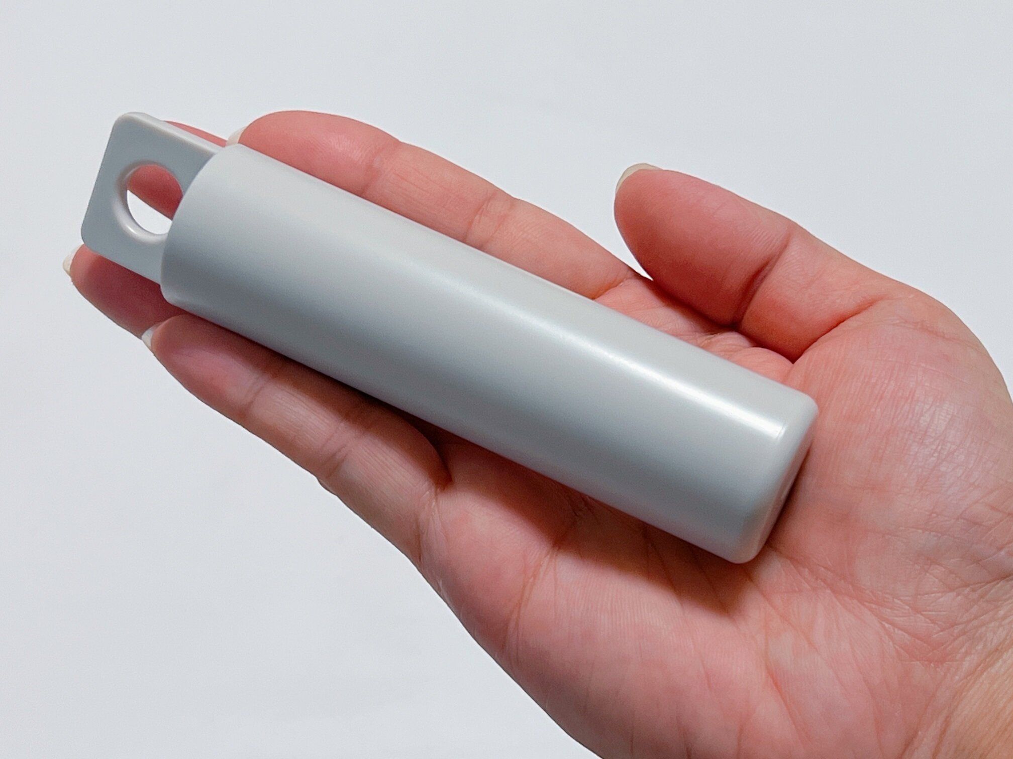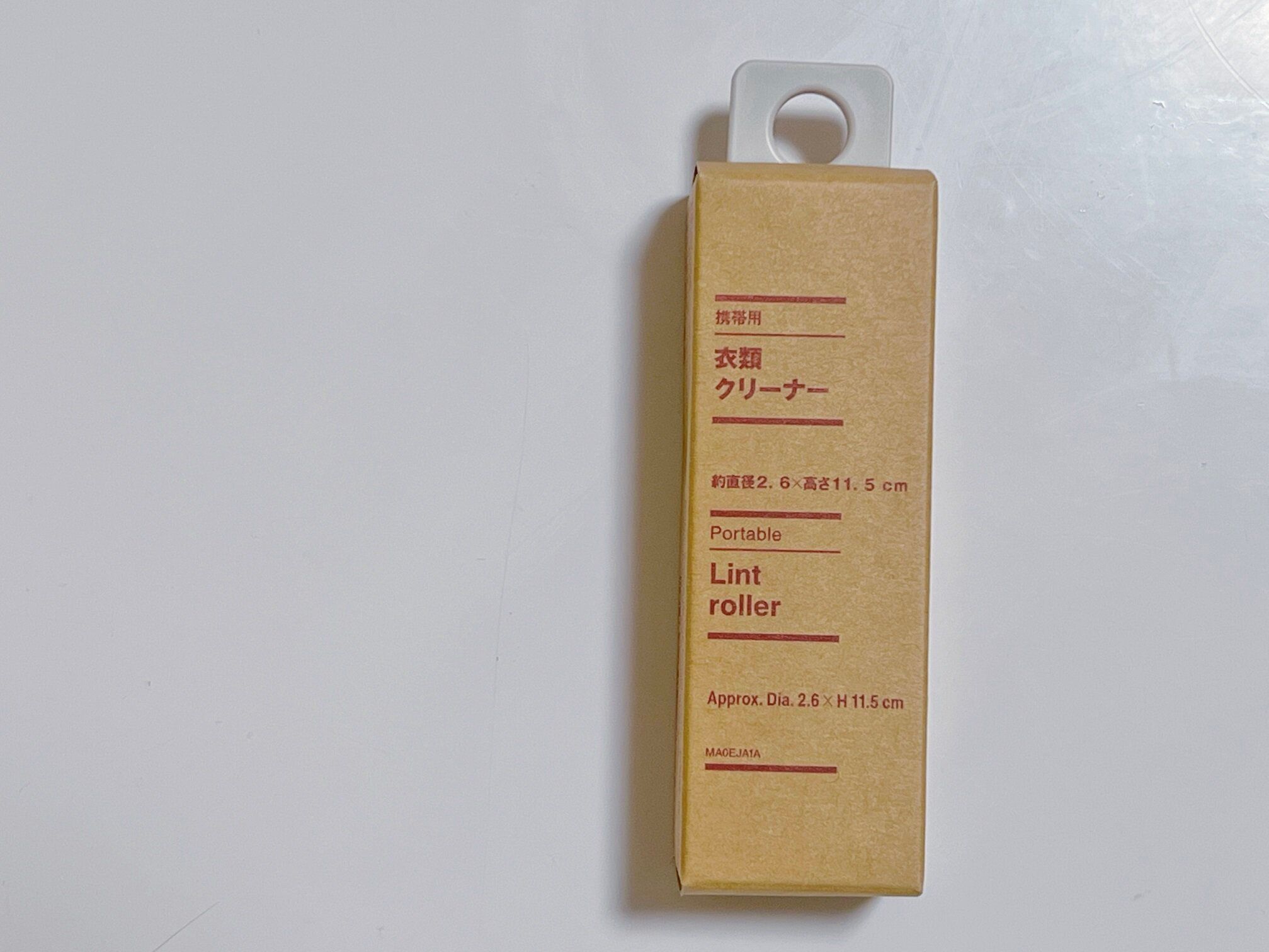今回ご紹介するのは、無印良品の「携帯用衣類クリーナー」です。価格は390円。重量約40g、サイズは約直径2.6×高さ11.5cmと非常にコンパクト。箱に入っていますが、売り場では見つかりにくいほどのコンパクトさです!