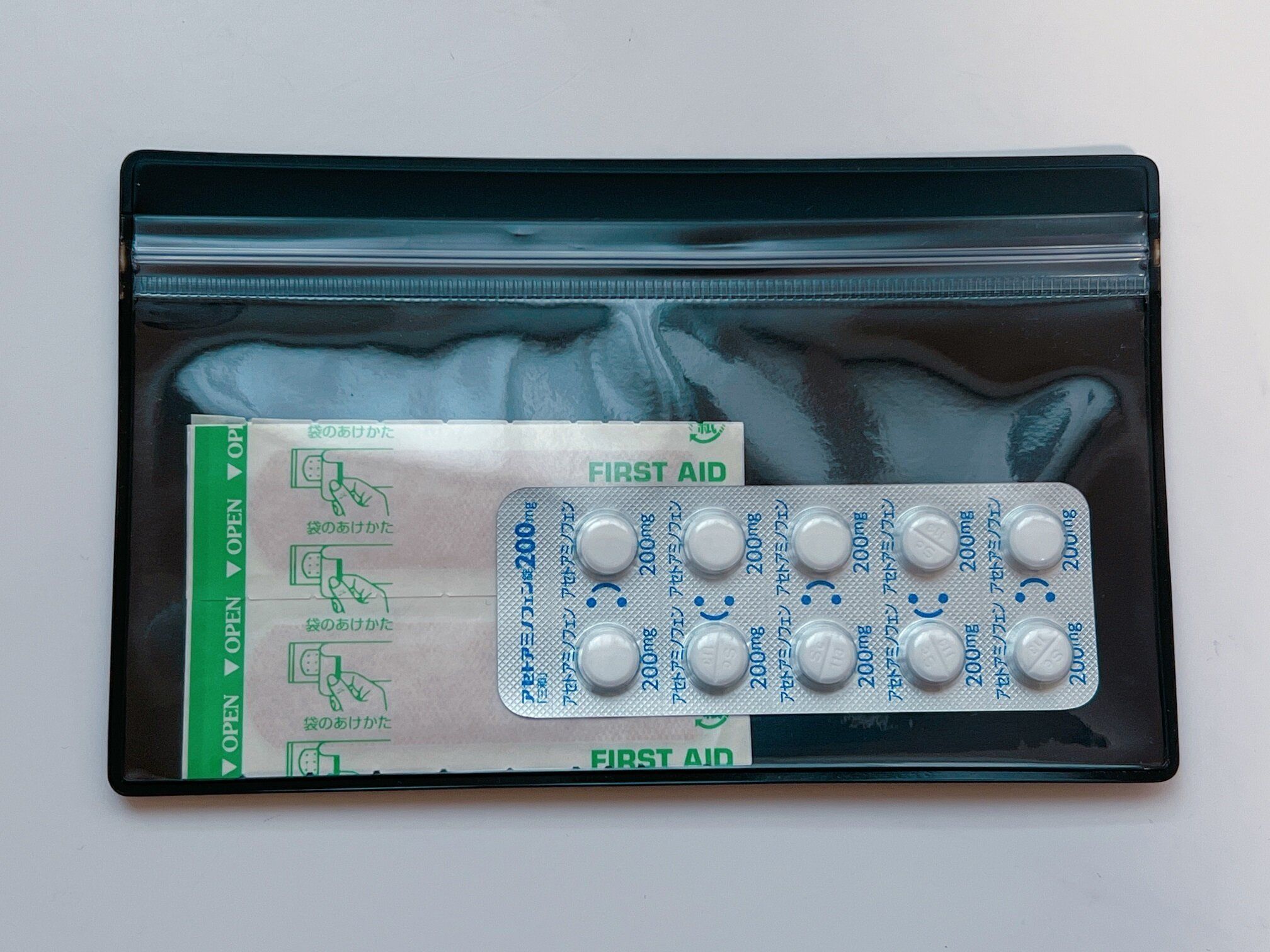 バッグやポーチの中で「どこにいった?」と探しがちな常備薬や絆創膏もクリアケースだとすぐに取り出せます。