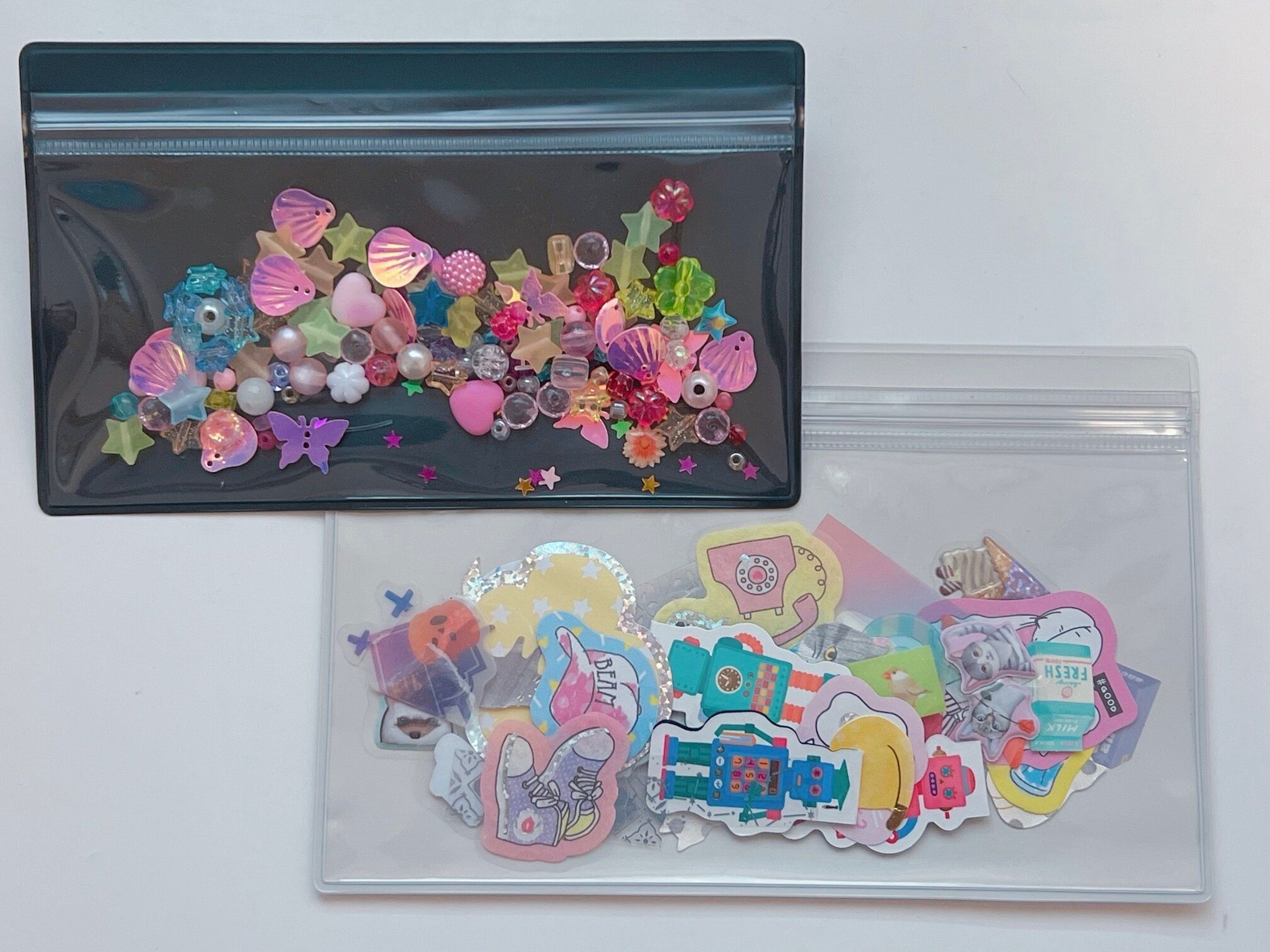 とくに女の子はかわいいシールやビーズなどが増えがちです。クリアケースをコレクション入れにすると、中身がすぐにわかって子どももお片づけしやすいです。