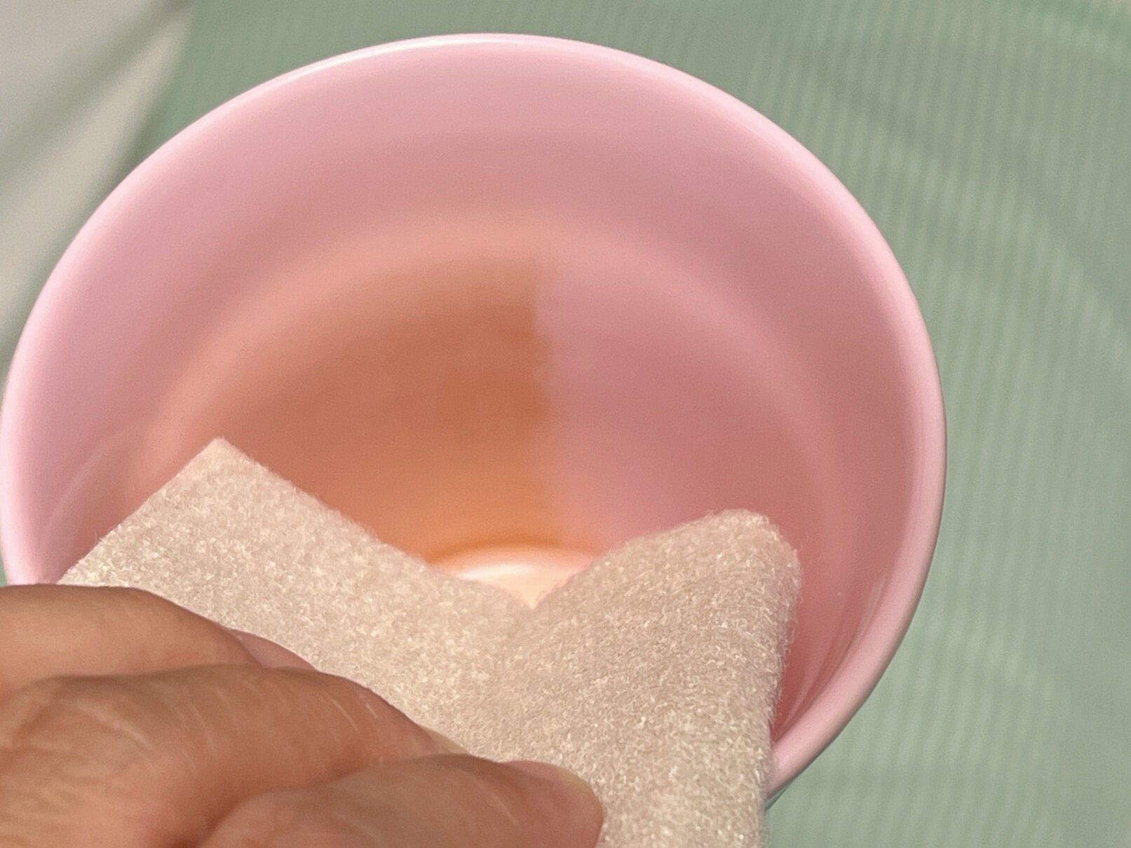 茶シブがついてしまったコップを重曹シートで磨くと、ピカピカになりました!