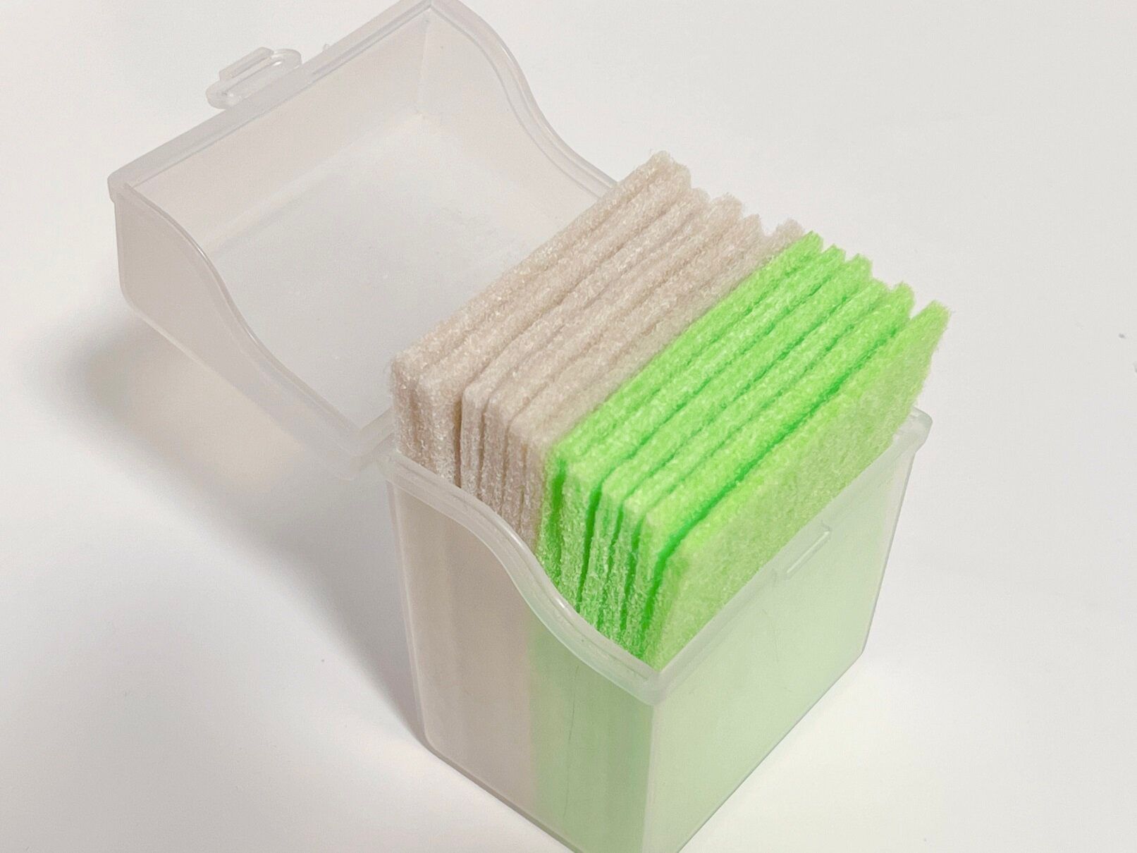 それぞれ、ゴムラテックスに重曹、セスキ炭酸ソーダが混ざっているので、水を含ませるとゴムから重曹、セスキ炭酸ソーダがしみ出し、汚れが浮きます。シートの摩擦力で汚れをかき取ってくれます。