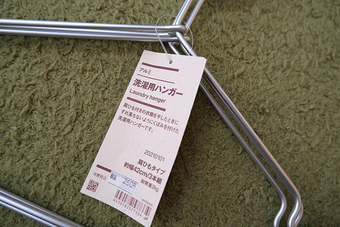 最近どんどん値下げをしている無印良品ですが、こちらもまたまた100円ほどの値下げを敢行。買うなら今しかないですね…!洗濯用ハンガー、3本組で250円です。こんなに華奢なボディなのに2kgまでのものをかけることができます。