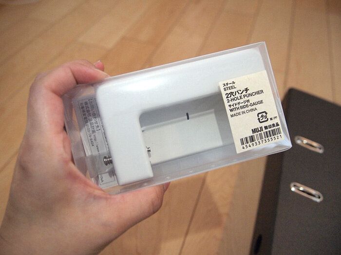 前々から気になっていた「無印良品のスチール2穴パンチ サイドゲージ付」。2穴パンチで収納しちゃえば、もっとカサは減るのではないか!?そしてより見やすいのではないか!?そう考え、新しい収納方法を試してみることに。