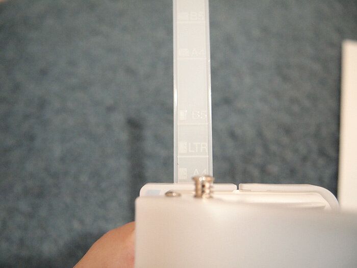 2穴パンチにはサイドゲージがついていて、かなりこまかく寸法が記入されています。こちらに合わせてパンチすれば、A4のものはA4の中心に穴が開くようになっています。