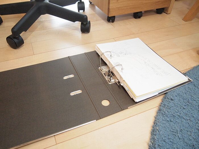 最初のクリアファイル収納方式に比べて厚みが半分以下に!そして作品の閲覧もしやすい。いい思い出はいい形で取っておきたいですね。作品に穴を開けるのはどうか、とも思いましたが、写真に撮って作品を破棄してしまうことも視野にいれていた者にとっては、これでも十分うれしいです。