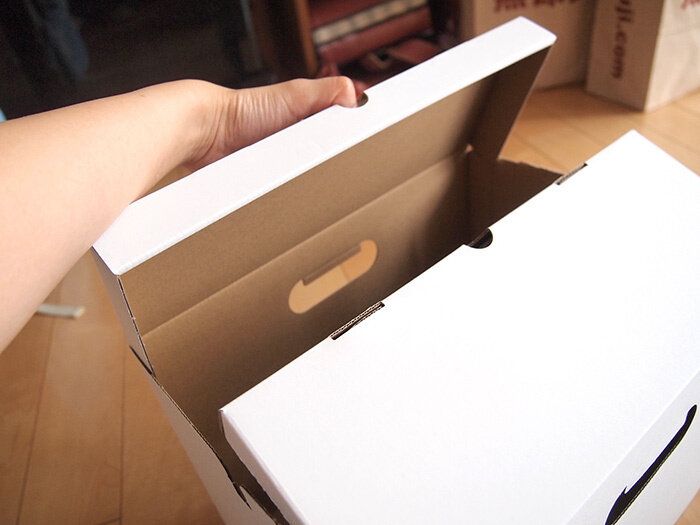 すでに店頭で試し済みだったのですが、ふつうの雑誌サイズのものがちょうどよく収まることがわかっていたので、雑誌の横幅分のダンボールファイルボックスフタ付きを購入していたのです!ちなみに耐荷重は2kgなのでおそらく持ち上げなければよいかと思います。