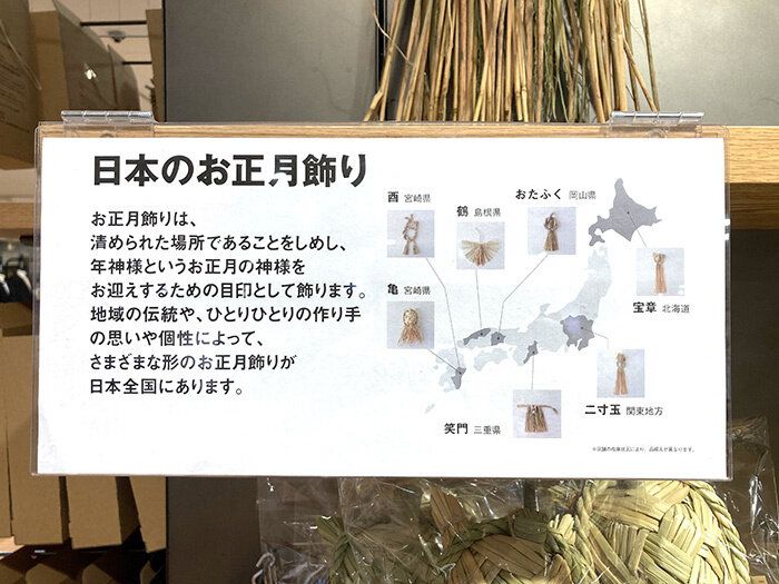 地域ごとに様々なお正月飾りがあるらしく、私の実家の北海道のものと、夫の実家の三重県のものがピックアップされていました!とてもカッコ良いです!なので、北海道でも三重県でもない地域のお正月飾りを買ってみようかな?など考えるのも一興でした。