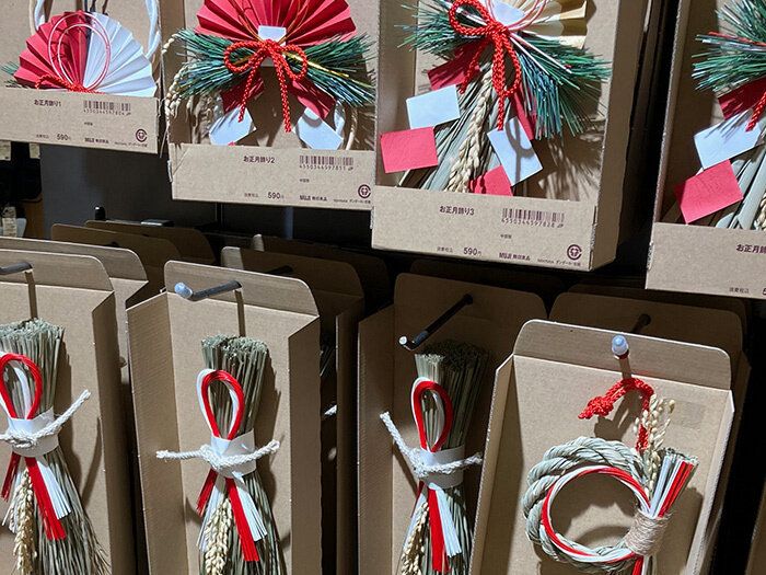 100円ショップで買ってももちろん良いと思いますし、スーパーで買っても良いと思うのですが、無印良品のお正月飾りは素朴で可愛くて素敵なんです…!