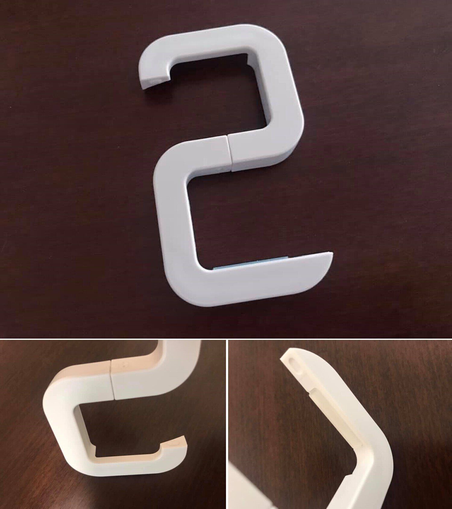 畳むとO字型、開くとS字型になります。S字に開いたとき、引っ掛ける側は鍵状になっているので、掛けた物が落ちる心配はありません。反対側の力が加わる部分はシリコーン樹脂が施していて、滑り止めになりしっかり支えてくれます。