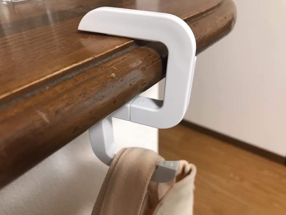 耐荷重が5kgもあるのでだいたいの荷物には耐えられますが、内寸が約3.5cmなのでそれ以上厚いテーブルにははまらないのでご注意下さい。