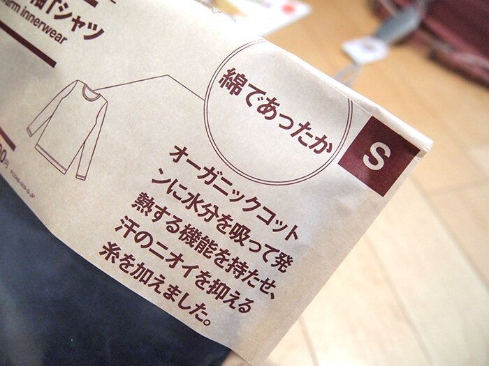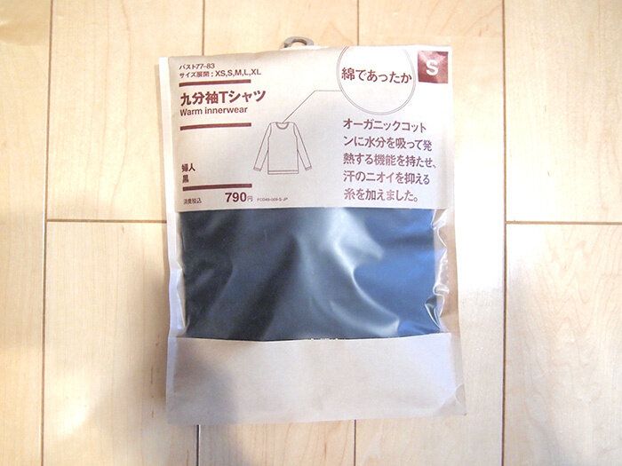 某「暖かい肌着」を私と娘用に大量に所持していたのですが、どうも乾燥しやすいな……ということで、それであればやはり綿生地でしょう。と、選んだのが無印良品の綿であったか「九分袖Tシャツ」。お値段は790円と、そこまでお安い印象はないですが、これがまた素晴らしかったです。