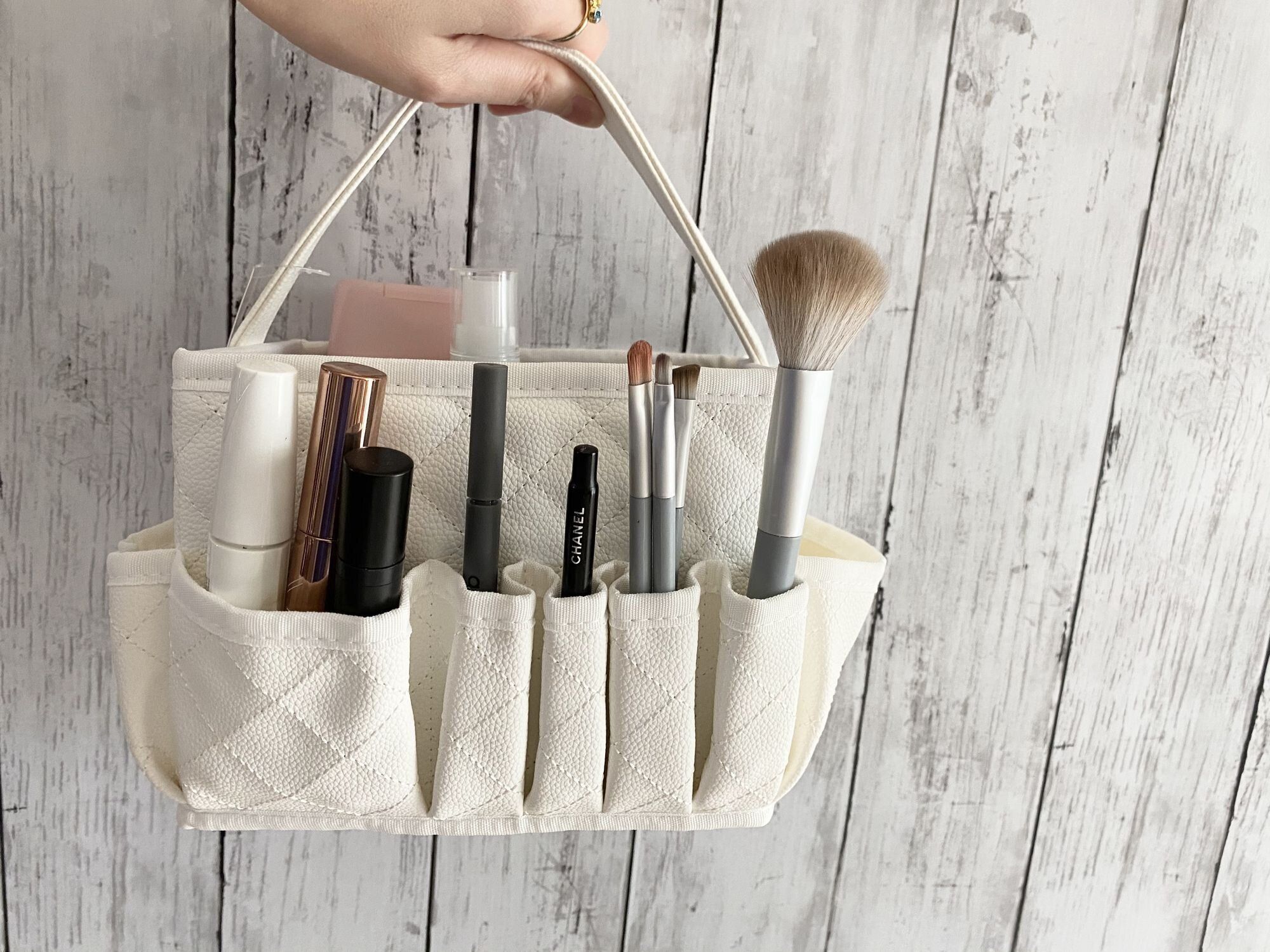 しっかりしたつくりで持ち手も太めなので、持ち運びもラクラク。リビングや洗面台に置いているけれどほかの場所でメイクをしたいときに便利ですよね。