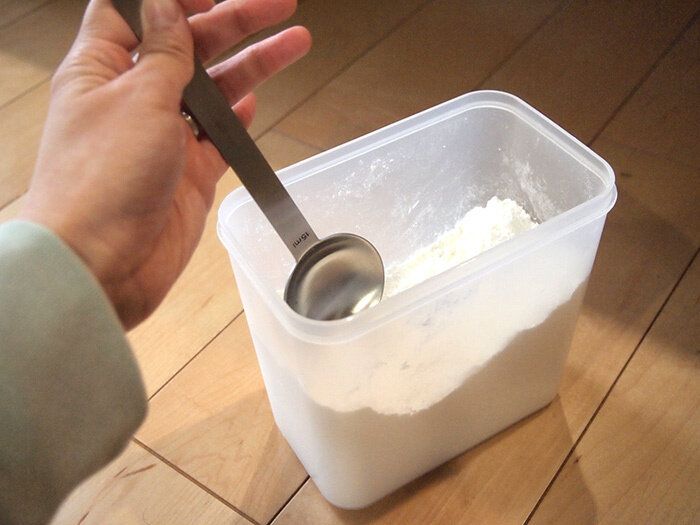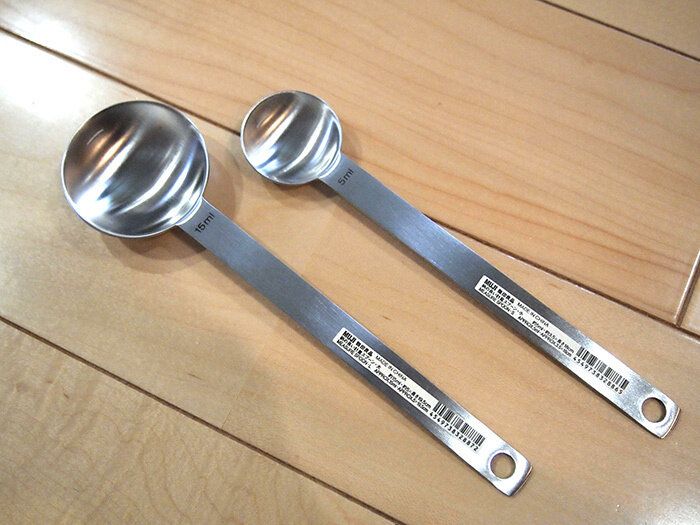 柄を長くすることで、容器の底まですくえて便利!という趣旨でつくられたこちらの軽量スプーン。便利だし、ステンレス製なので丈夫!一度購入したら末代まで使える逸品となるでしょう…。2分の1の線も刻印されているので、半量のときも使えますよ!