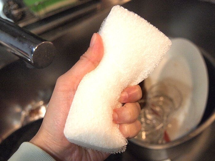 ほかのスポンジに浮気した時期もありましたが、結局ここにもどってきてしまう。そんな中毒性のあるスポンジです。用途はもちろん食器洗いですが、白いスポンジということで汚れやヘタリがわかりやすく、替え時がはっきりわかるのが魅力です。