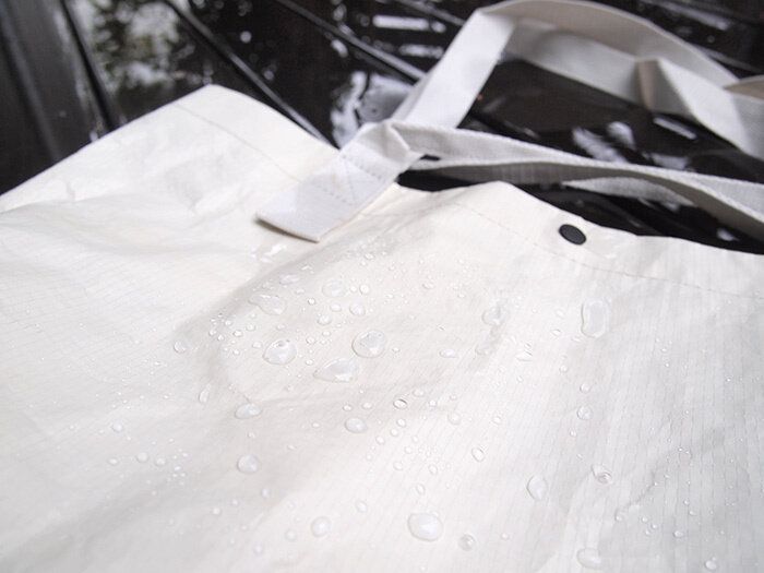 特徴としてはやはり水にめちゃくちゃ強いというところ。外側も内側も強いので、濡れたものを入れても大丈夫ですし、たとえおもいっきり水がかかったとしてもノーダメージです。梅雨時のお出かけは、突然の雨・風もあるかもなので、ぜひ活用してみてください!