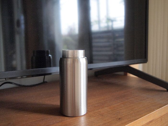 写真はお湯を中に入れてみた図ですが、中からは湯気がたっていますが表面は全く熱くなっておりません。回して飲むタイプの水筒が使えるようになったら、より軽量化するためにもこういったものを検討してみてはいかがでしょうか。