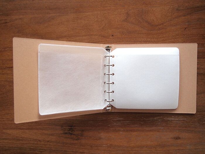 リフィール5枚入りで最大8枚まで増やせます。リフィールは一枚80円。両面に入れることができるので、最大でCD・DVDディクス16枚が収納できます。クラフトCD・DVDホルダー本体は590円と、再生紙を利用しているだけあってお手頃!