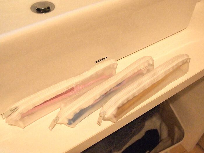 こちらのポーチに乾かした状態で入れておけば、清潔に保つことができるし、家族分把握しやすく、経済的です!