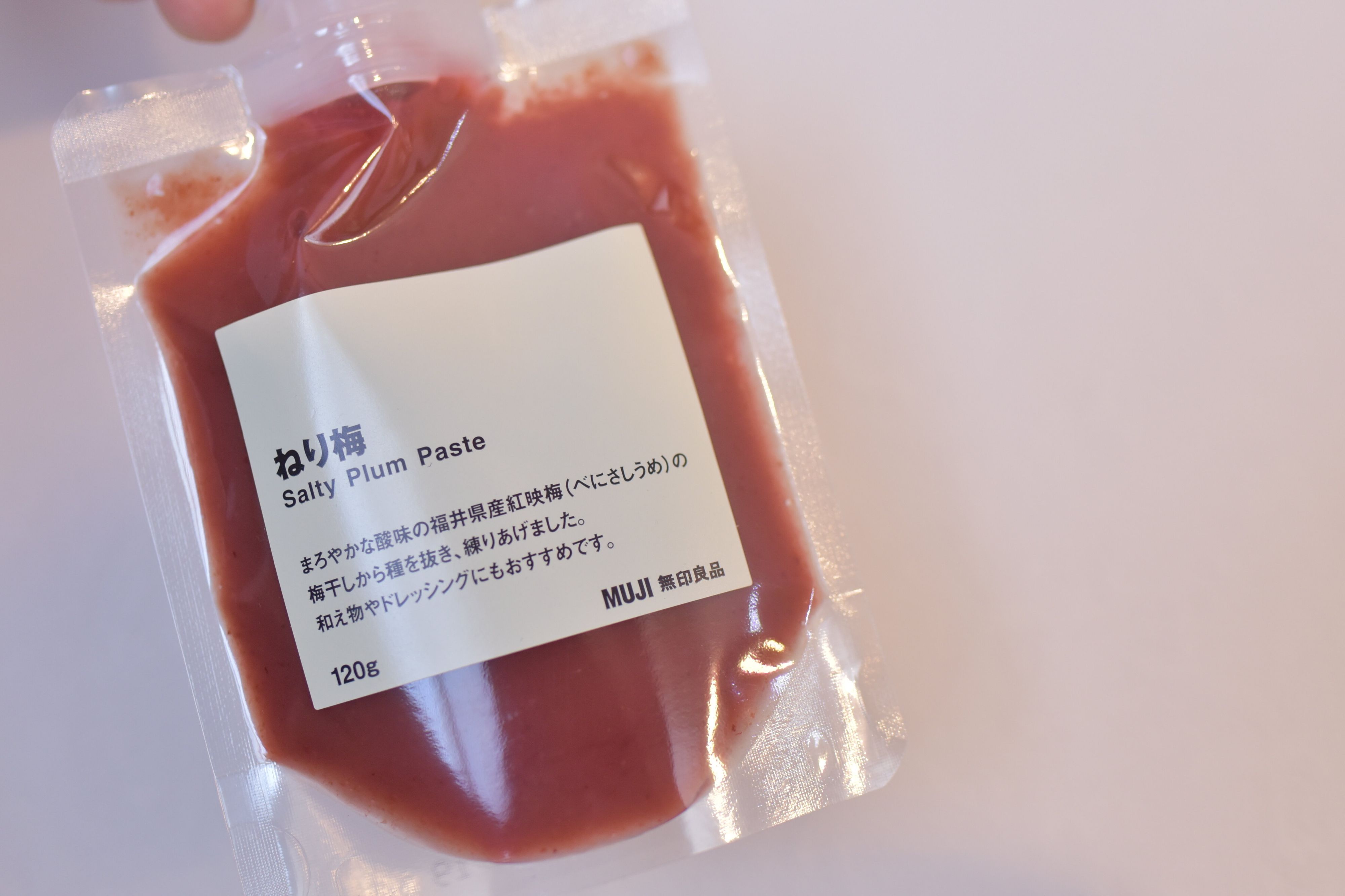 ねり梅は、スーパーやコンビニなどの調味料コーナーでも多く見かける定番調味料ですが、無印良品のねり梅は、とにかくなめらかで、くちどけがいい!
