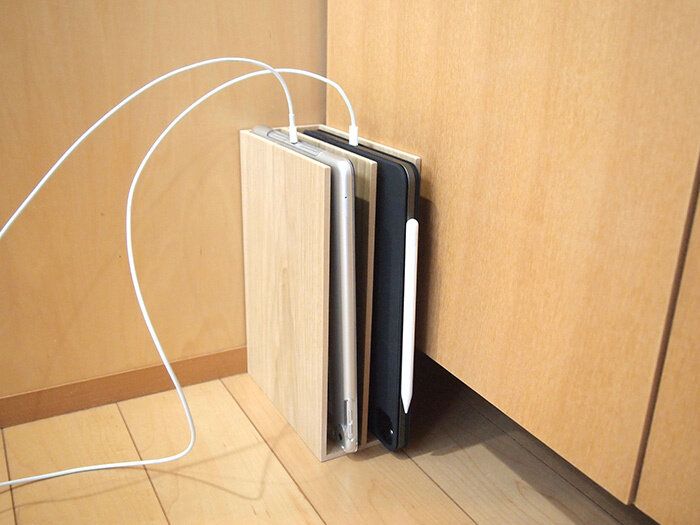 サイズ感がちょうどいいのと、無印良品の木製製品は基本的に安っぽさがないので、インテリアのこだわっている感も出てちょうどいいです。床に置いて充電しているといつ踏んづけてしまうかわからないので、急ぎ購入しました…。