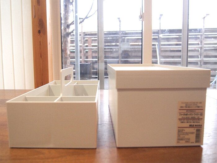 iPhoneの計測アプリなどで棚の大きさなどをあらかじめ携帯などに入れておけば、ちょっと無印良品の店先で考え込むとなんとなくいい感じの収納が見つかるところがよいですね。