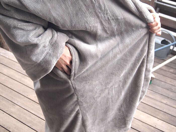 いちばん素敵なのはとにかく暖かいということ。肌触りもよくて、大きめのつくり。じつはこちら、男女兼用でワンサイズのみのつくり。家事をするときなどは暑くなってしまうのでサッと脱げるというところも個人的にはお気に入り。