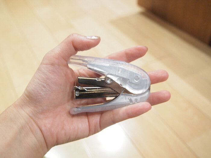 左のステープラーも無印良品のものですが、一般的なステープラーとほぼ同じサイズを想像してもらえれば大丈夫です。それよりもかなり小さいということがわかると思います。手の大きさが小さい人にはかなり使いやすいのではないでしょうか。