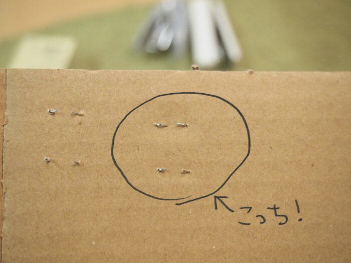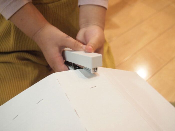 まずは一般的なステープラー。ダンボールに対して「できたら片手でとじてみて」と言いましたがやはり難しくて、両手を使ってなんとか。
