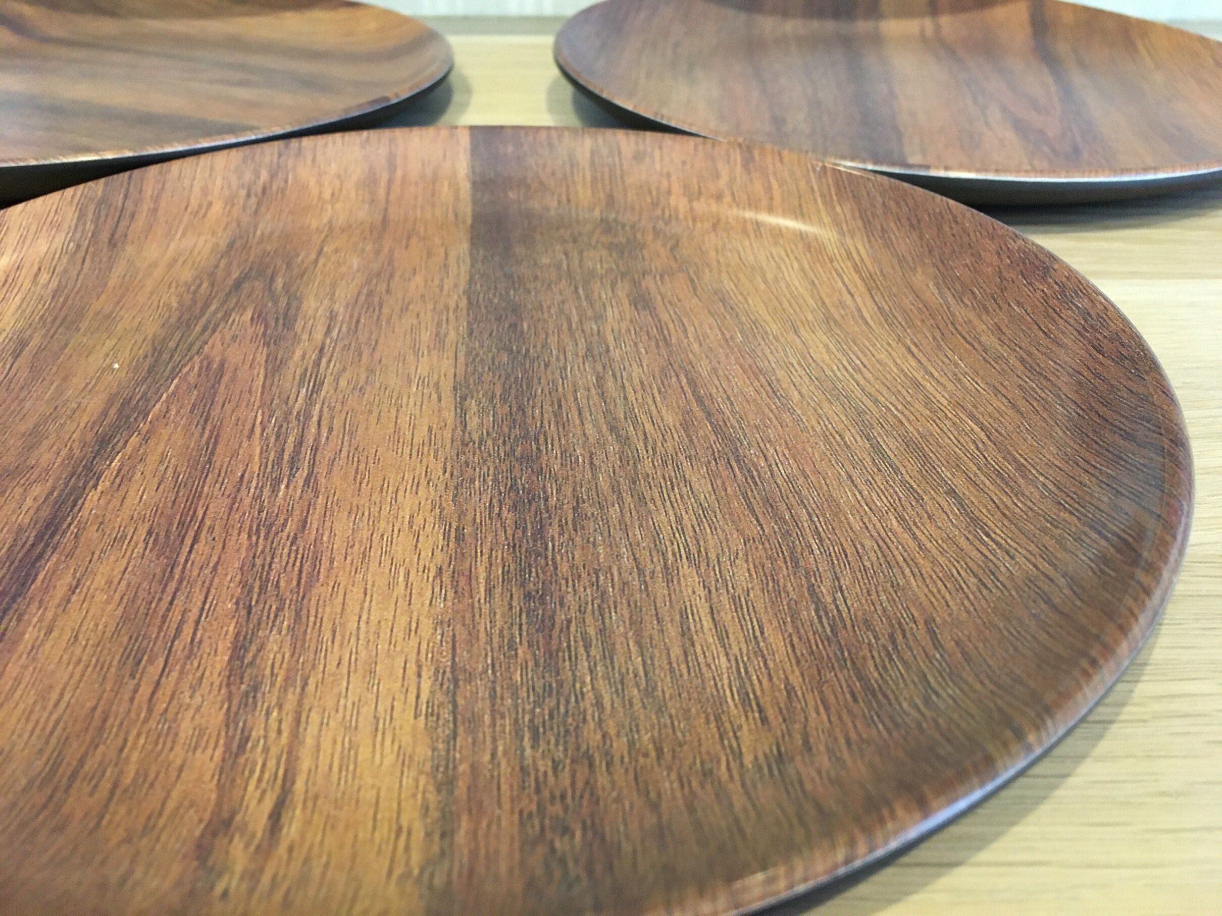 メラミンプレートでありながら、表面は木目調と言うのが珍しいですね。触った感じはツルツルで鈍い光沢があります。