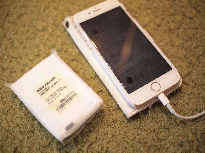 メガネ拭きって忘れがちですよね…こちらは無印良品の携帯用メガネ拭き。80円(税込)です。小さいポケットティッシュのような形で販売されています。これがですね…かなりピカピカになります…!