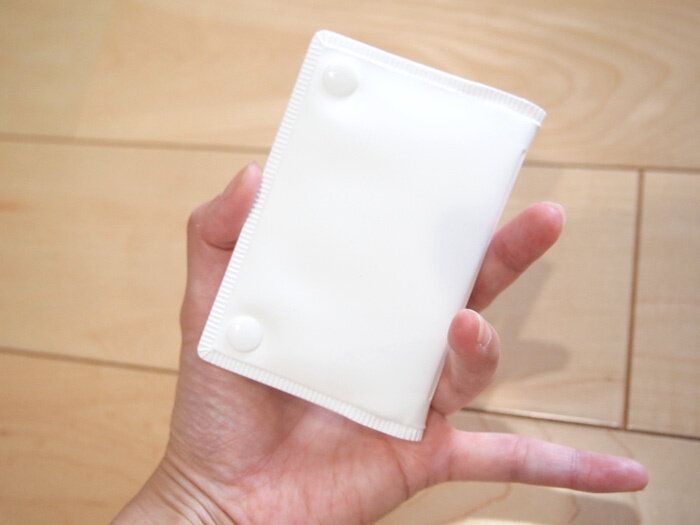 手のひらにちょっと収まらないくらいのサイズ感が素敵。サイズ展開は「小」と「大」の二つ。耐性のありそうなEVA素材なので、荷物にもみくちゃにされても大丈夫そうなところが魅力です。