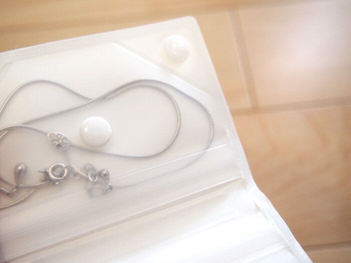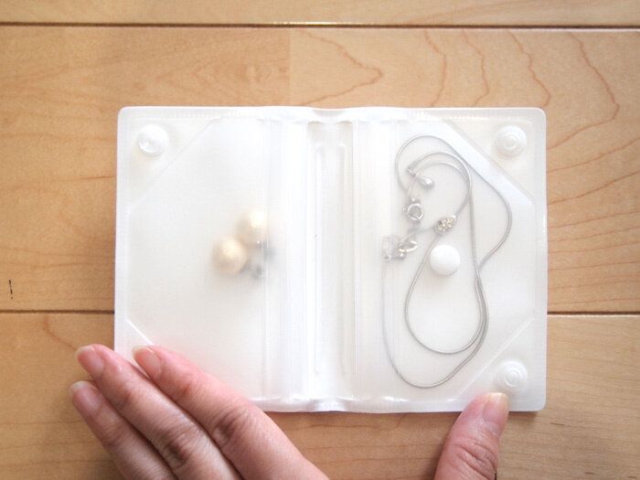 中央のボタン部分はもちろん開閉可能なので取り出しやすく、入りやすい仕組みになっています。旅先では焦ってしまってネックレスが絡んでしまい、後々散々な目にあうことも…「EVAアクセサリーケース」を使って快適にアクセサリーを持ち運びしましょう!