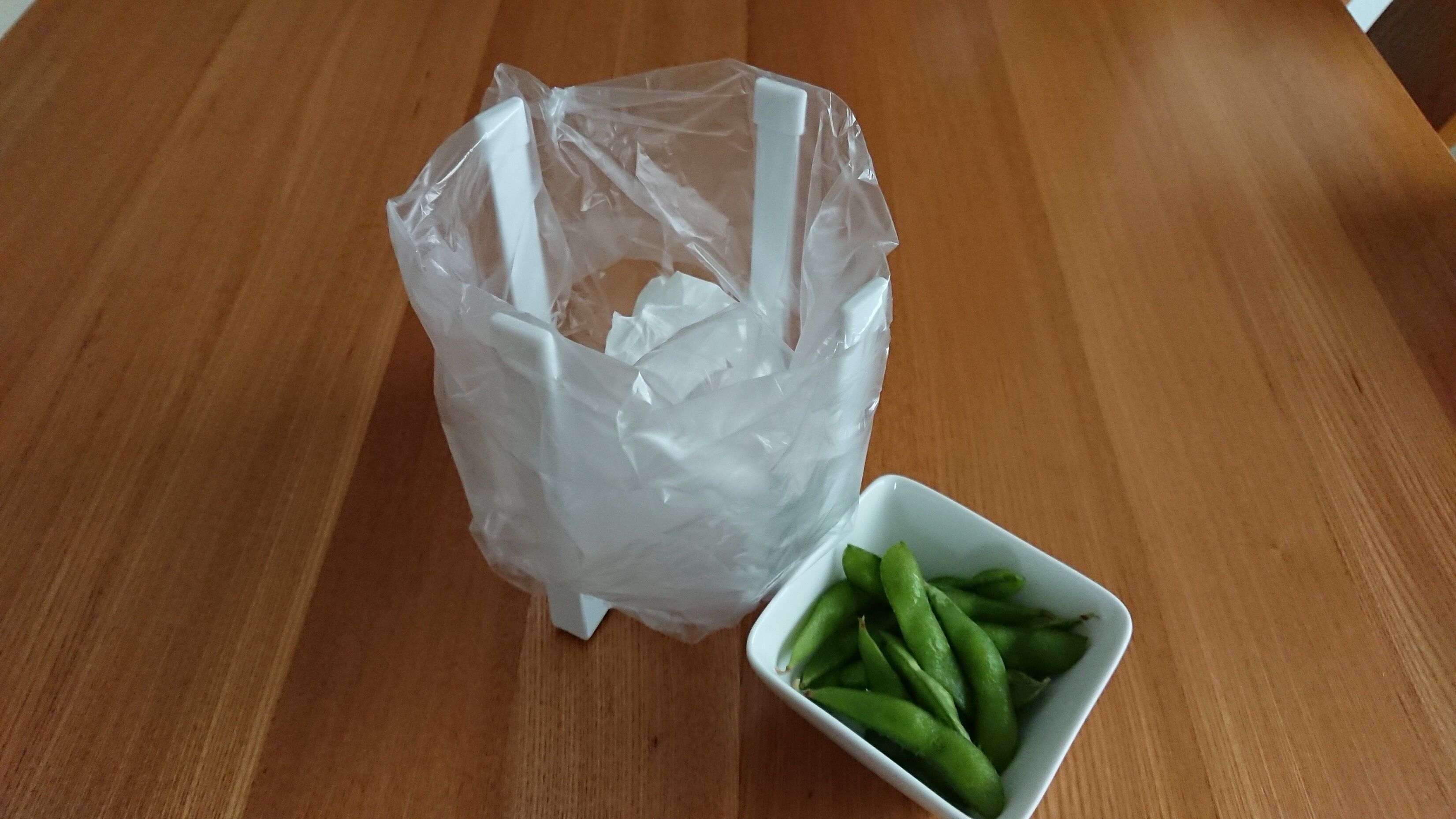 食卓にホルダーを置いてポリ袋を被せれば、簡単にミニゴミ箱の完成!子どもたちのおやつの時間にも役立つこと間違いありませんね。また、消しゴムのカスもすぐに捨てられるので、お子さまの学習の際にも役立ちそうですね。